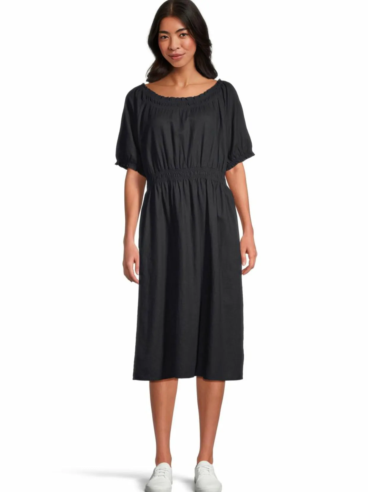 Mukavasti istuva kesäinen mekko Stockmannin omalta naisten mallistolta NOOM. Tämä kaunis mekko on valmistettu miellyttävän tuntuisesta ja ihoystävällisestä pellava-viskoosista. Polvipituinen mekko sopii ihanteellisesti arkikäyttöön ja vaikkapa puutarhajuhliin. Se on helposti yhdistettävä monenlaisiin asuihin.