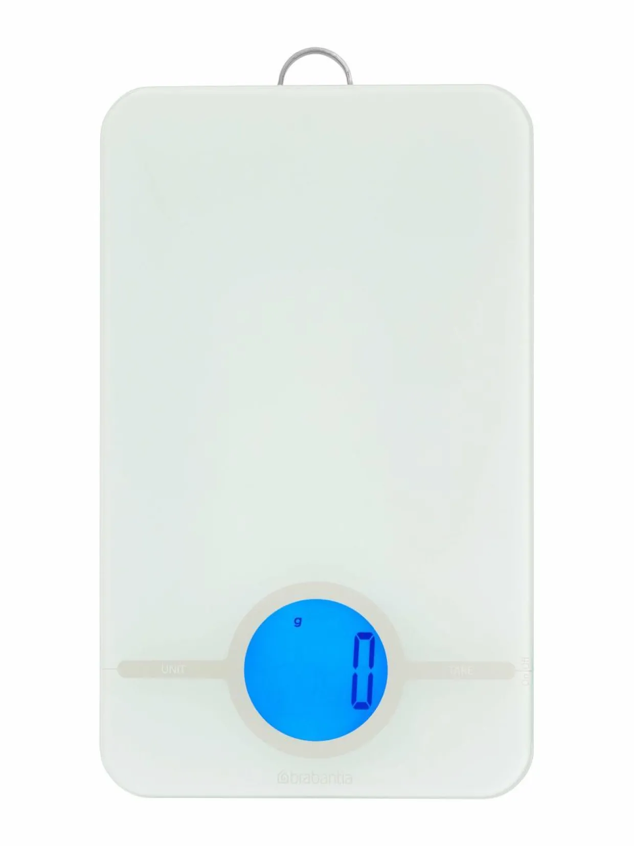 Brabantian keittiövaaka näyttää painon aina yhdestä grammasta viiteen kiloon asti. Vaa’assa on lasipinta ja valaistu LCD-näyttö. Keittiövaaka on helppo ripustaa metallisen lenkin avulla.