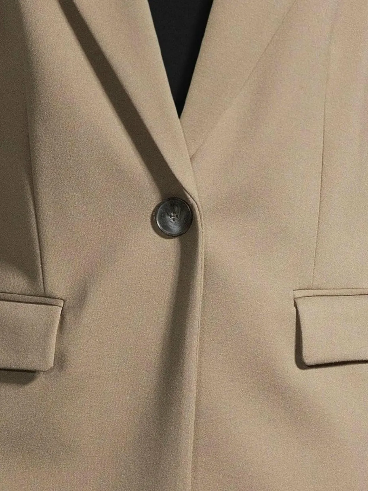 Pehmeästä ja hengittävästä viskoosiseoksesta valmistettu hieman ylimitoitettu Tatum-bleiseri on yhtä mukava kuin elegantti. Valmistettu raskaasta, hieman joustavasta trikoosta, ja siinä on läpälliset taskut ja yksi nappi.