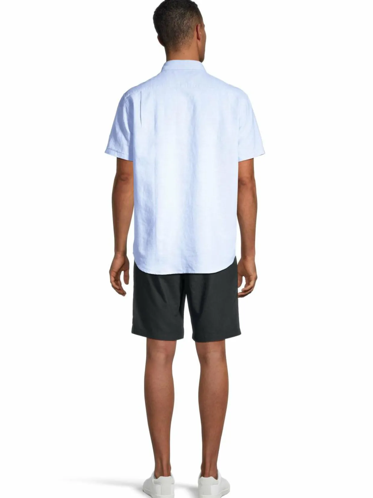 Construen Taustin-shortsit on valmistettu hengittävästä, rennon ilmeen luovasta puuvilla-pellavasekoitteesta. Housuissa on joustavasti poimutettu vyötärö, jota voi säätää nauhoilla. Mallissa on avoimet sivutaskut ja napilliset takataskut. Nämä housut ovat viileä ja mukava valinta kuumiin kesäpäiviin.