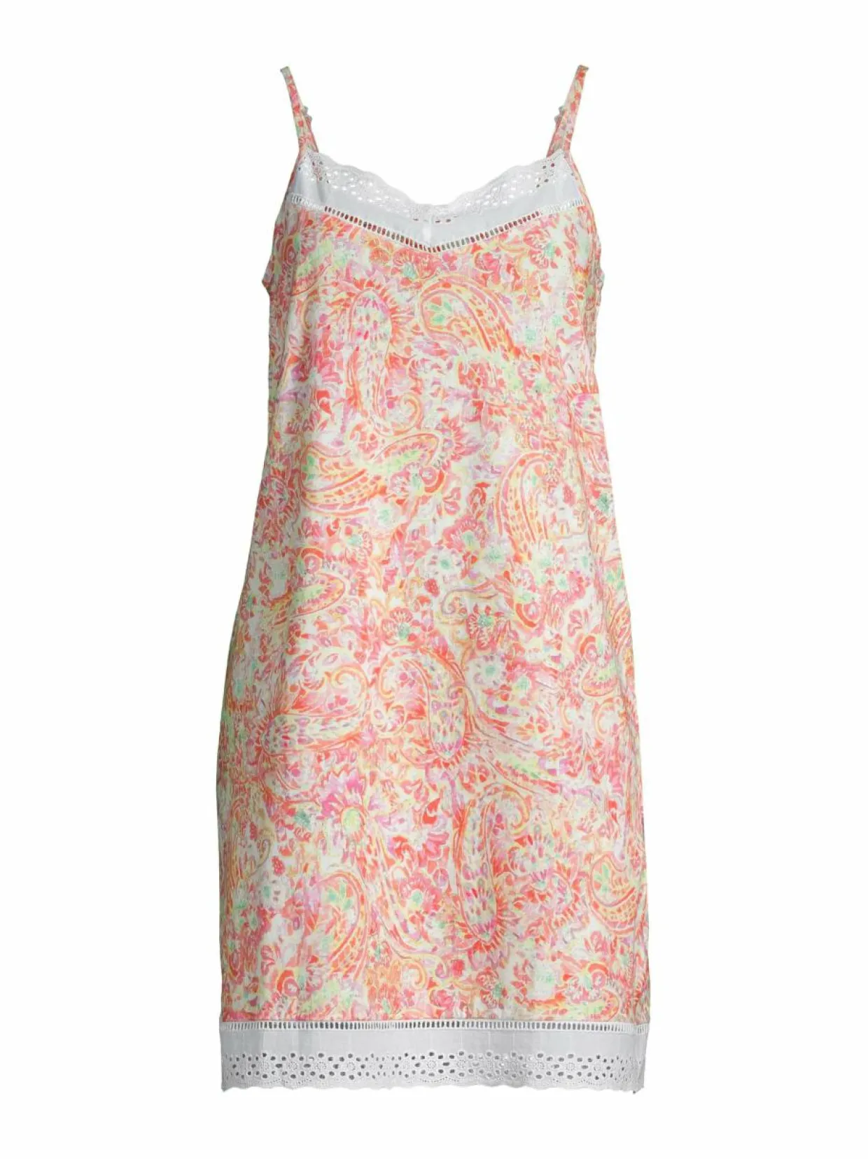 Hihaton yöpaita paisley-kukkakuosissa. A+moren Taylyn-yöpaita on valmistettu pehmeästä luomupuuvillasta. Vaate on suunniteltu normaaliin istuvuuteen. Yöpaidan olkaimet ovat säädettävissä.