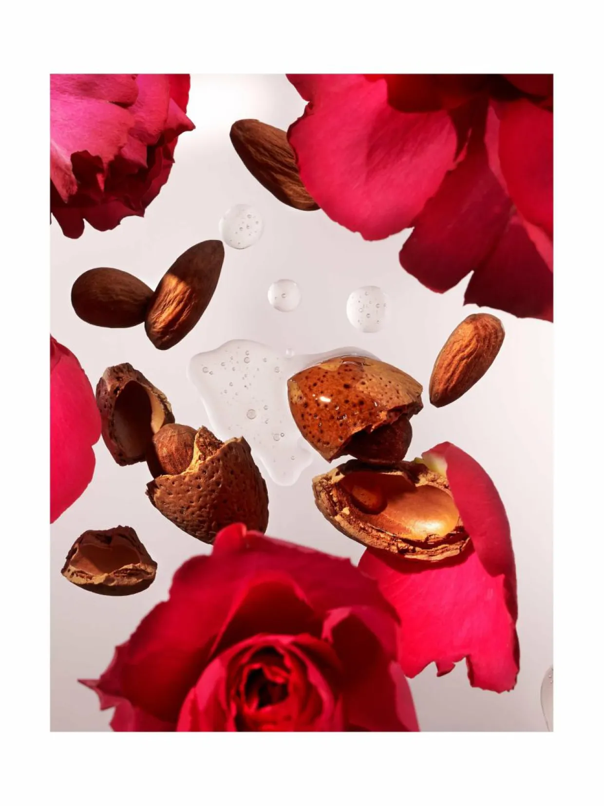 Tuotteen innovatiivisessa koostumuksessa on runsaasti tyydyttymättömiä rasvahappoja sisältävää manteliöljyä sekä intialaisen ruusun makea ja herkkä tuoksu. Se sopii täydellisesti kaikille ihotyypeille, mukaan lukien kuivalle, herkälle tai hilseilevälle iholle. Tuotteeseen on lisätty myös ravitsevaa triplaomegayhdistettä sisältävää rypsiöljyä sekä E-vitamiinia sisältävää risiiniöljyä.