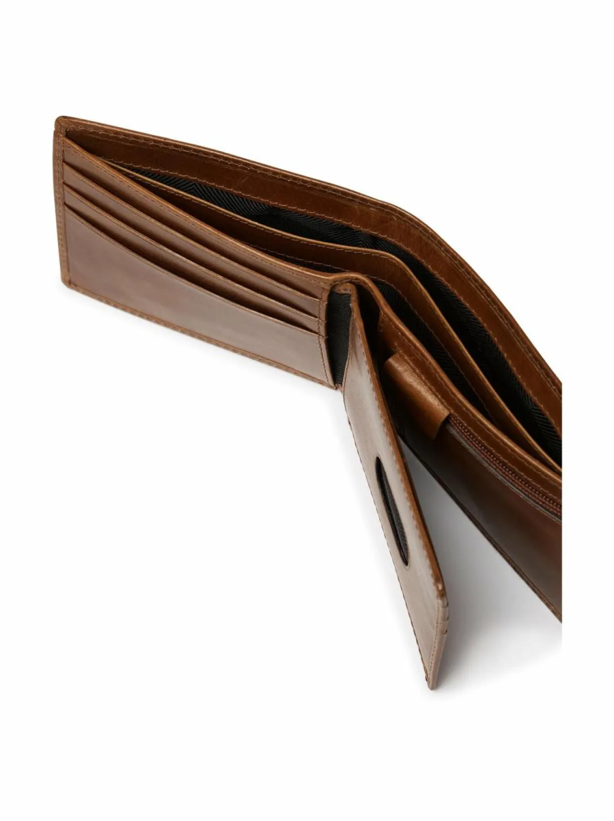 Laadukas, klassinen nahkalompakko kuudella korttitaskulla. Osio käteiselle ja painonapillinen kolikkotasku. Lompakossa on myös osittain läpinäkyvä tasku henkilöllisyystodistuksellesi. Vuorissa RFID-suojakalvo. Mitat: Leveys 11 cm ja korkeus 8,5 cm.