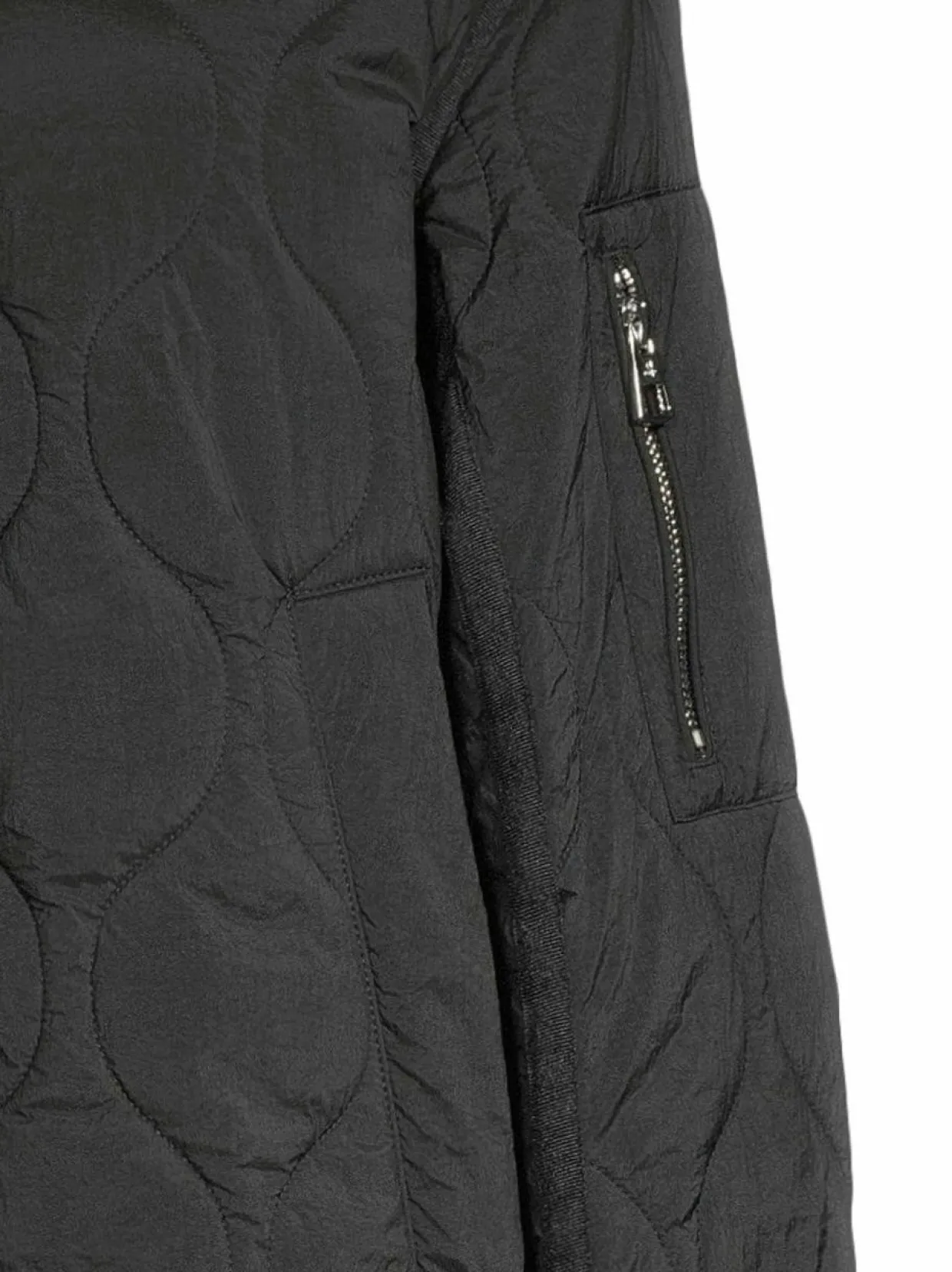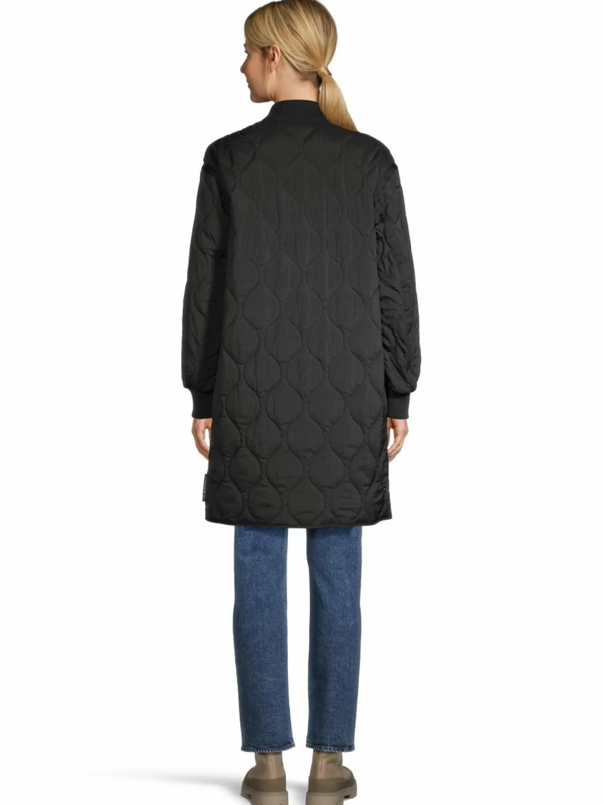 Puolitpitkä bomber-mallinen takki, jossa on timanttitikattu pinta ja kevyt vanutäyte. Matala resorikaulus ja resorit hihansuissa lisäävät käyttömukavuutta. Metallivetoketju ja vetoketjullinen tasku hihassa antavat käytännöllisyyttä. Takki sopii moniin tilanteisiin eri alaosien kanssa.
