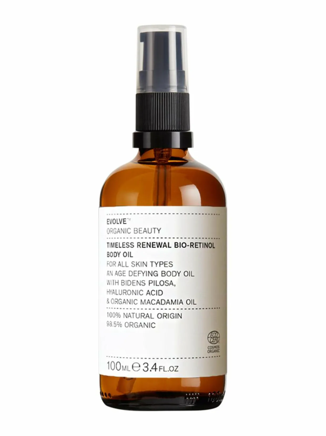 Evolve Organic Beauty Timeless Renewal Bio-Retinol Body Oil on taivaallisen tuoksuinen kiinteyttävä vegaaninen vartaloöljy.