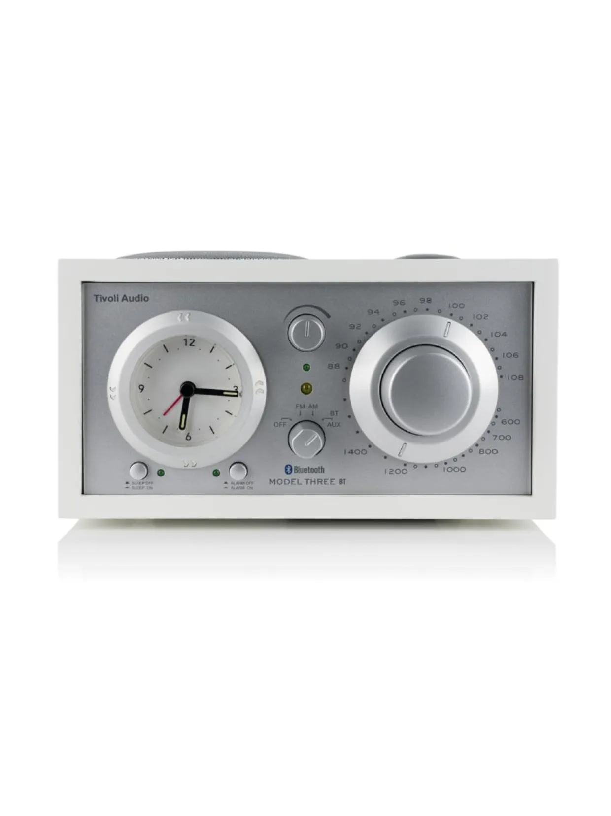 Model Three BT tuo analogisen Model One -mallin tyylin ja äänen täydellisesti makuuhuoneeseen lisäämällä klassisen analogisen kellon. Kello on suunniteltu helppokäyttöiseksi, ja se on kevyesti valaistu, jotta näet sen myös yöllä.