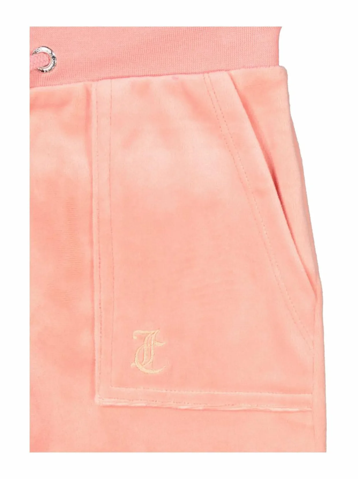Samettisen pehmeät joggersit lapsille Juicy Couture vaatemerkiltä. Lahje on suora ja rento. Tässä housumallissa on myös taskut. Kangas on miellyttävän joustava. Vyötäröllä on joustava resori säätönauhoilla.
