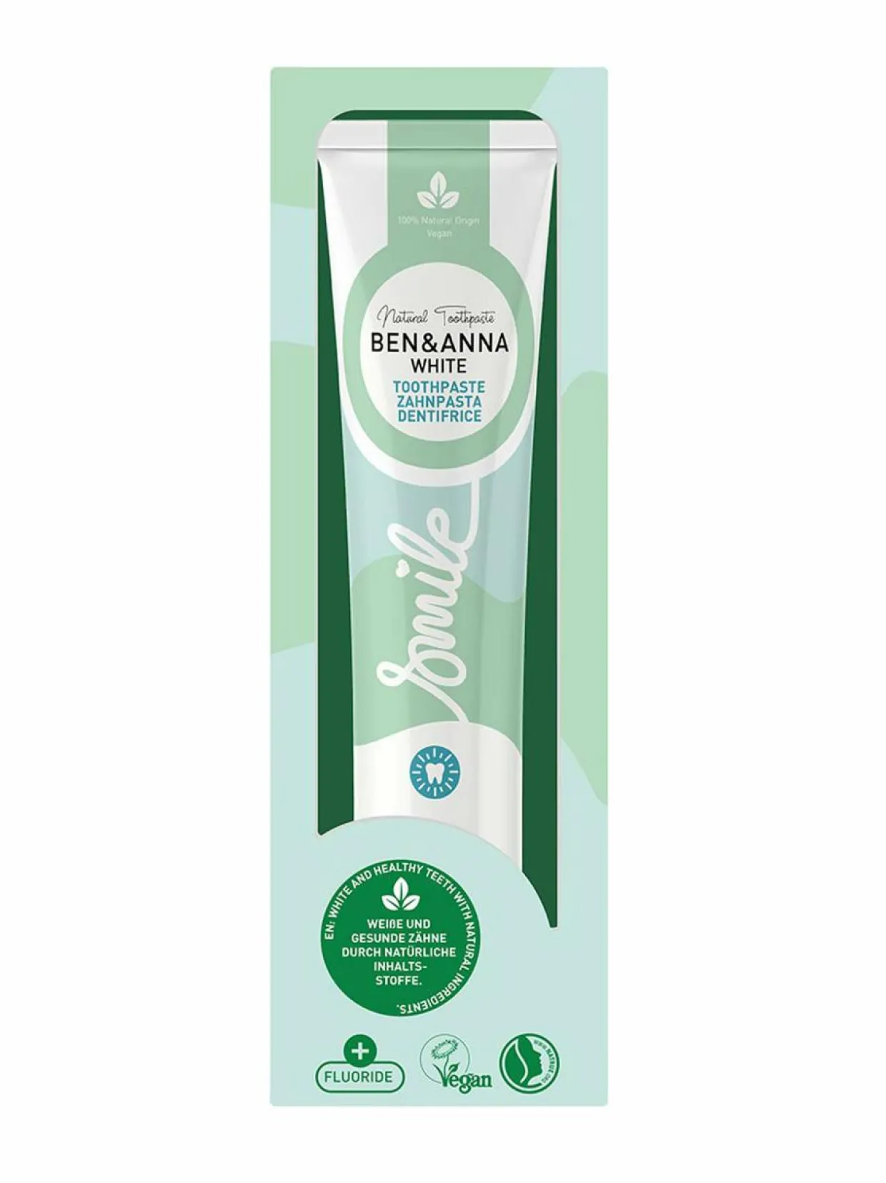 Luonnollisesti terveet hampaat ja raikas hengitys! Ben & Anna hammastahnat ovat saatavilla useissa mauissa, kuten raikkaan vihermintun ja villimarjan makuisena. Hyvien makujen lisäksi Ben & Anna pitää huolen siitä, että hammastahnat puhdistavat ja hoitavat tehokkaasti.Ben & Annan tuubihammastahnat sisältävät luonnollista natriumfluoridia, joka vahvistaa kiillettä ja vähentää reikiintymistä. Valitse oma suosikkisi ja nauti terveistä hampaista sekä raikkaasta hengityksestä!