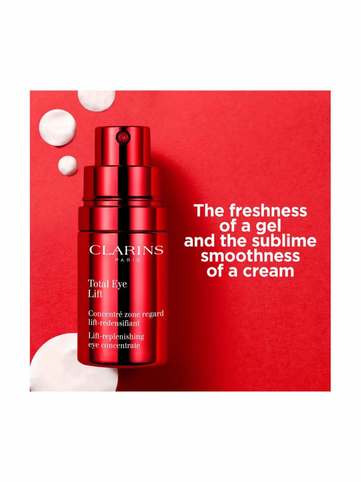 Silminnähden tehokas, liftaava hoitotuote silmänympärysiholle. Clarins Total Eye Lift on liftaava ja ryppyjä tasoittava silmänympäryshoito. Se hoitaa kokonaisvaltaisesti silmänympärysihoa; liftaa, silottaa ja ravitsee ihoa sekä vähentää tummuutta ja turvotusta. Lisäksi silmänympäryshoito vahvistaa samalla ripsiä.