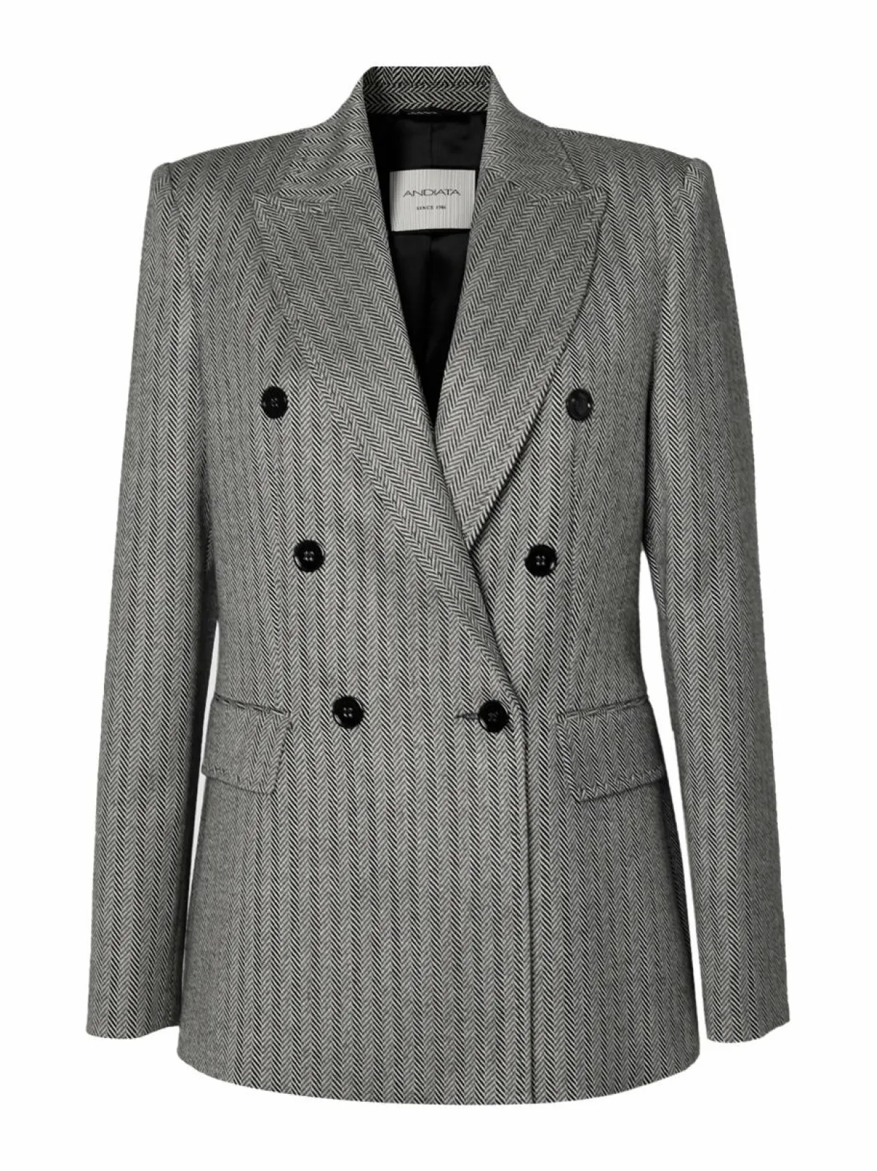Materiaali100 % villa PesuohjeetKemiallinen pesu VäriBLACK HERRINGBONE Avainsanatkalanruotobleiseri, jakku, villableiseri, takki, villakangasbleiseri, kalanruotokuvio, Andiata, päällystakki
