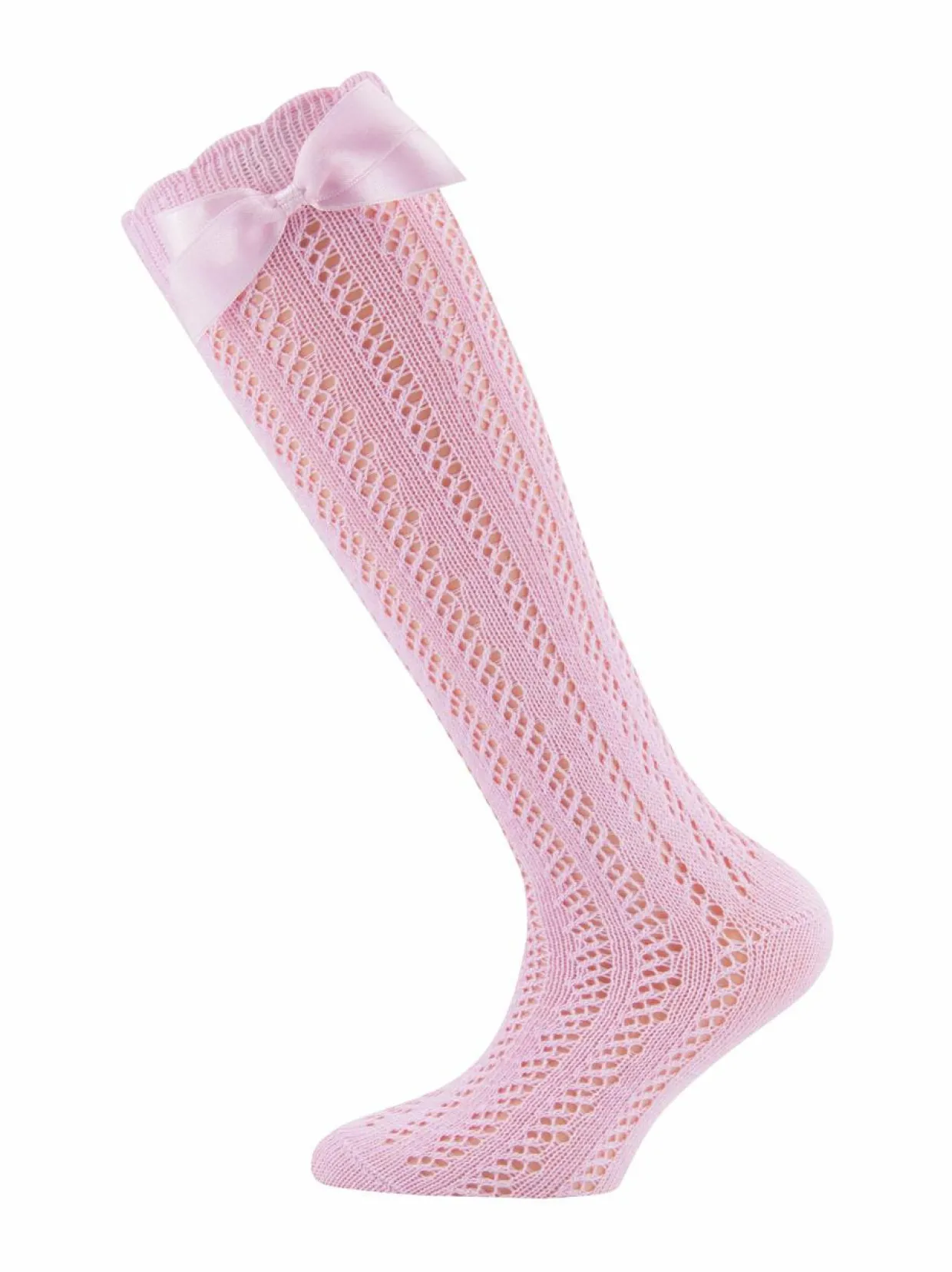Ihanteelliset lasten polvisukat, jossa pitsikuvio ja rusettisomiste. Valmistettu joustavasta puuvillasekoitteesta.