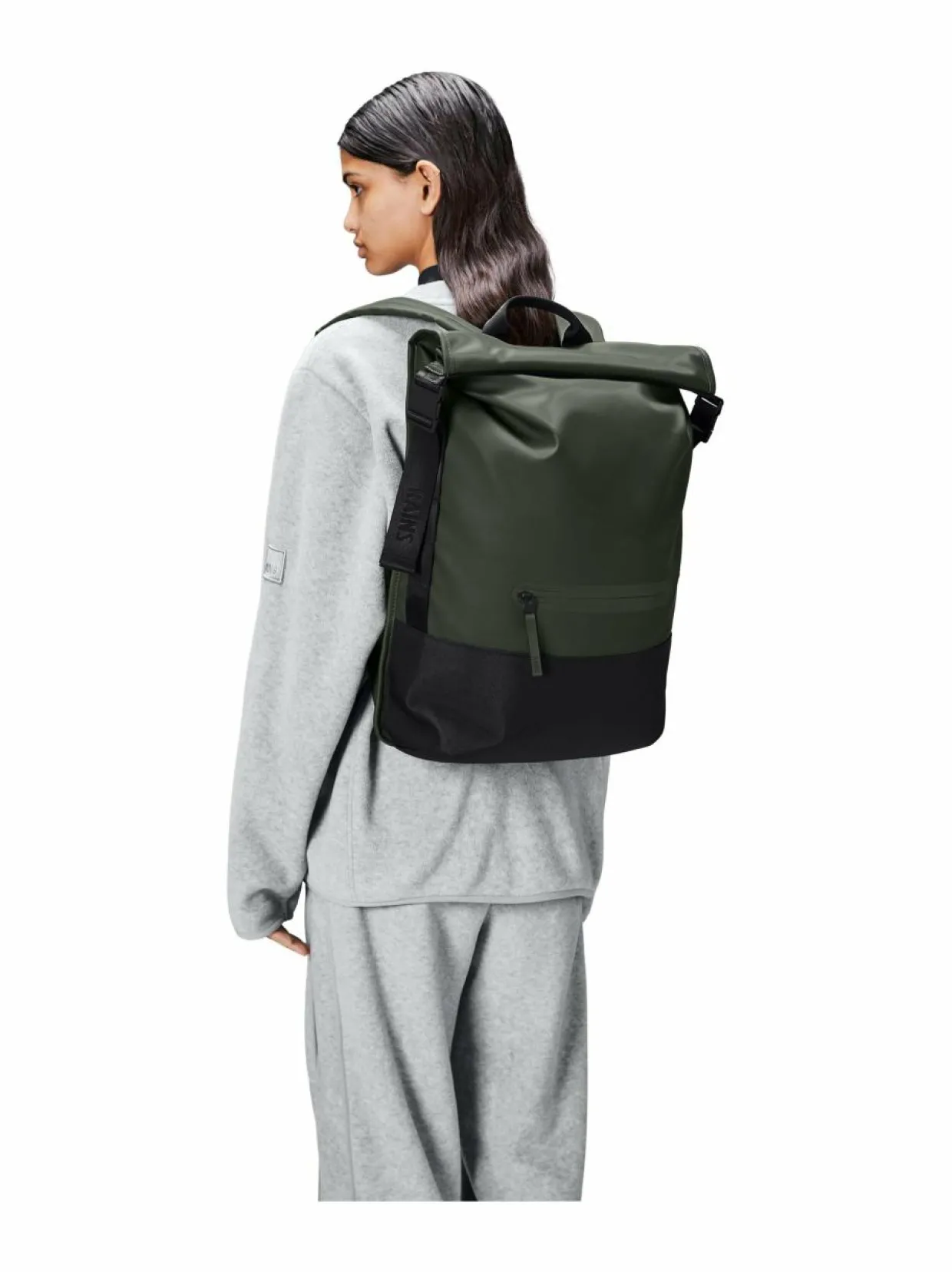 Trail Rolltop -reppu on kaupungin perusvaruste, täydellinen esimerkiksi pyörällä tai kävellen tehtäville työmatkoille. Tyylin viimeistelee ylhäältä rullattava suuaukko. Tämä vedenpitävä laukku sisältää myös sisäisen läppäritaskun, vetoketjullisen etutaskun sekä pehmustetun takapaneelin. Trail Rolltop -reppu on valmistettu Rainsin tunnusomaisesta vedenpitävästä PU-kankaasta, joka on suunniteltu kantokykyä, kestävyyttä ja pehmeää tuntumaa ajatellen.