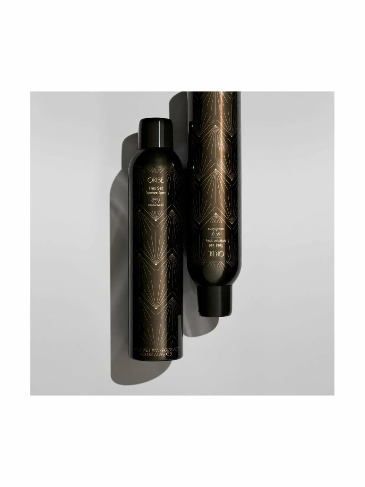 Oribe Très Set Spray sisältää teknologiaa, joka antaa paljon uusia mahdollisuuksia muotoiluun, se lisää rakennetta, volyymia ja kiiltoa. Suihkeena tarkasti annosteltava tuote muuttuu hiuksissa hienoksi vaahdoksi, joka puolestaan häviää tyylikkästi muotoiltaessa. Hiukset on suojattu myös lämmöltä. Lopputuloksena syntyy kuohkeat ja pehmeän joustavat hiukset, joiden muoto säilyy pitkään.