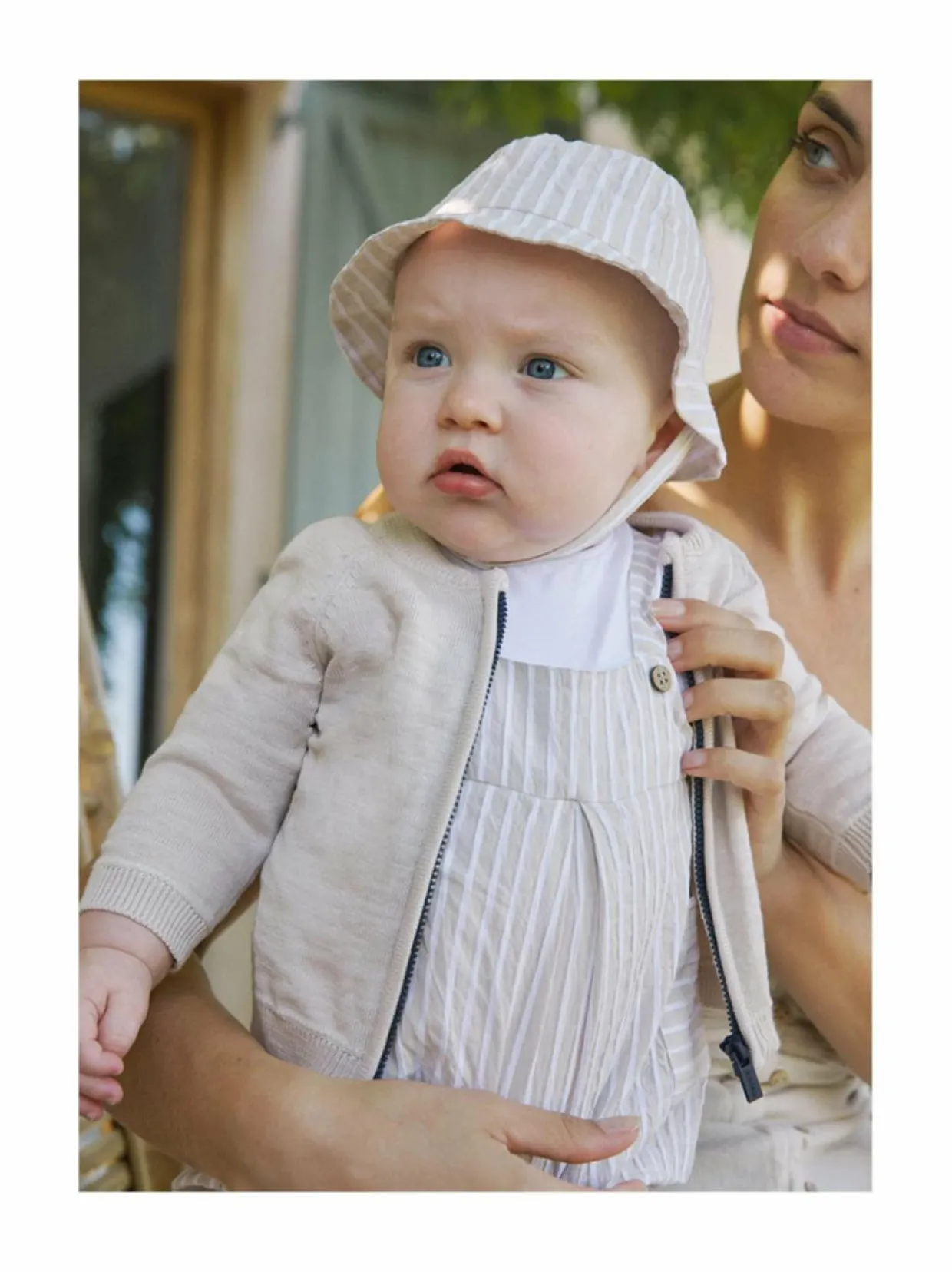 Pehmeä ja mukava neuletakki, jossa on vetoketjukiinnitys. Neuletakki on valmistettu puuvillasta ja siinä on pitkät hihat. Neuletakki on helppo pukea ja riisua ja se sopii erinomaisesti sekä arkeen että juhlaan. Puuvilla on luonnollinen ja hengittävä materiaali, joka sopii erinomaisesti vauvan herkälle iholle.