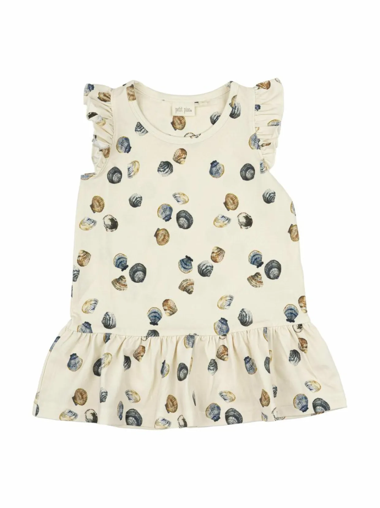 Petit Piao -merkin mekko on valmistettu hengittävästä luomupuuvillan ja modaalin sekoitteesta, johon on lisätty elastaania tuomaan joustoa. Mekossa on suloinen printti, frillahihat sekä laskostus helmassa. Rento trikoomekko sopii jokaiseen päivään.