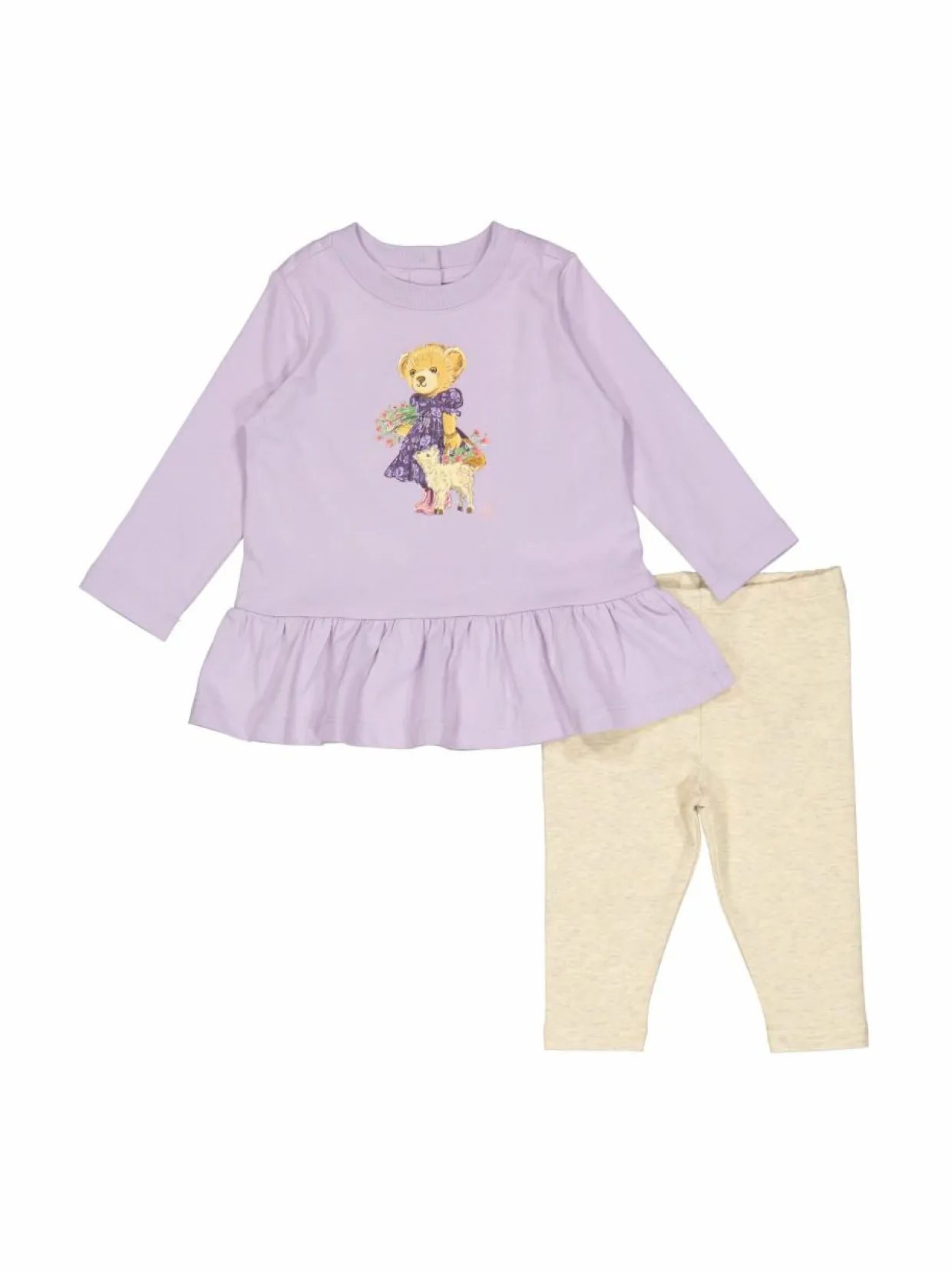 Polo Ralph Laurenin settiin kuuluu trikoomekko ja yhteensopivat leggingsit, jotka on valmistettu miellyttävästä puuvillasekoitteesta. Mekon etupuolella on merkin ikoninen nallekarhu, joka tuo asuun leikkisän ja tyylikkään yksityiskohdan. Housut ovat joustavat ja mukavat. Tämä monikäyttöinen setti on täydellinen vauvan jokapäiväiseen käyttöön.
