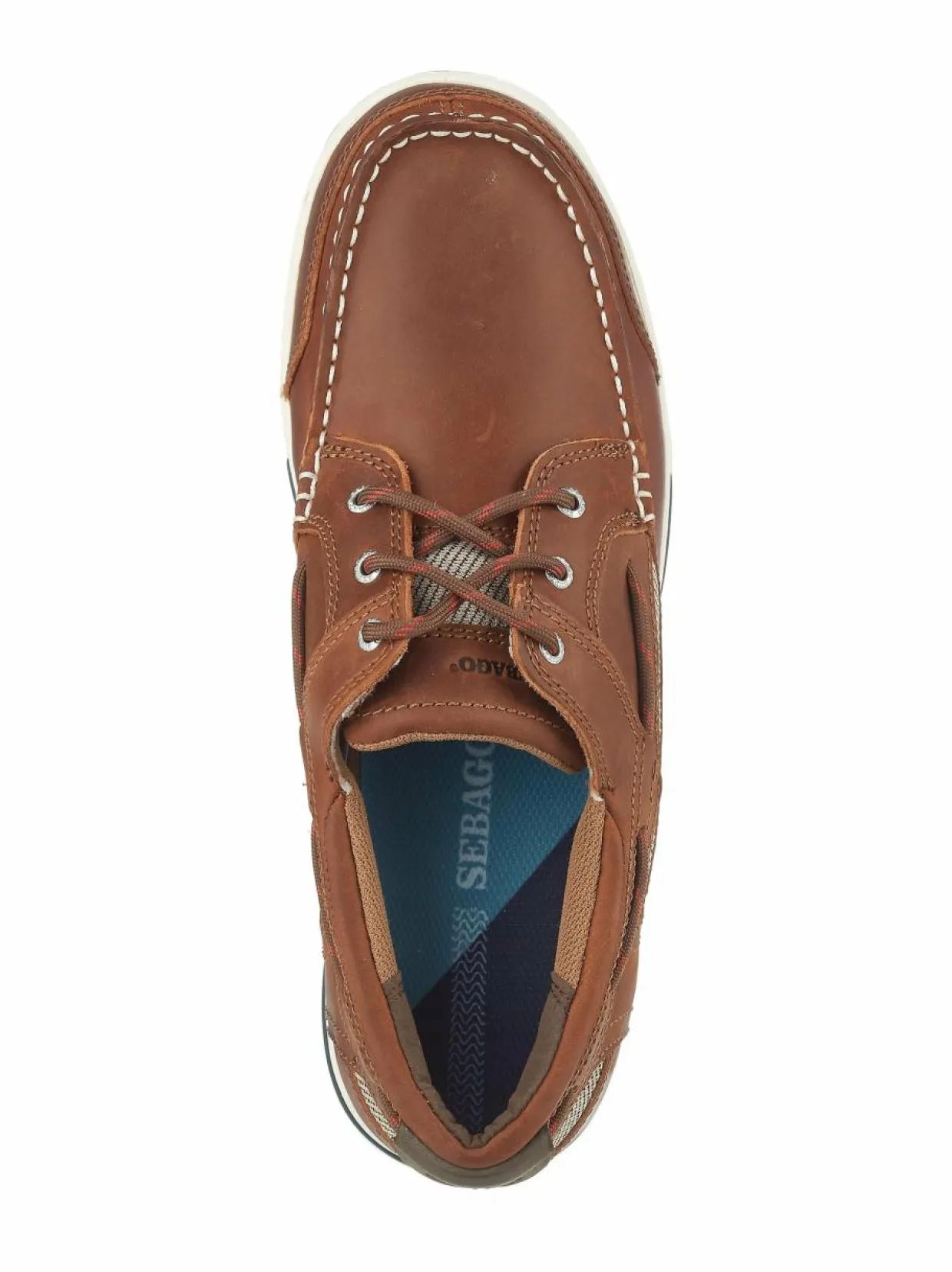 Sebagon klassiset purjehduskengät ovat rasvakäsiteltyä nahkaa, ja niitä somistavat nahkanauhat. Mukavissa kengissä on kevyt Eva-välipohja sekä joustava ja liukkautta estävä Sebago Cup -kumipohja. US-koot.
