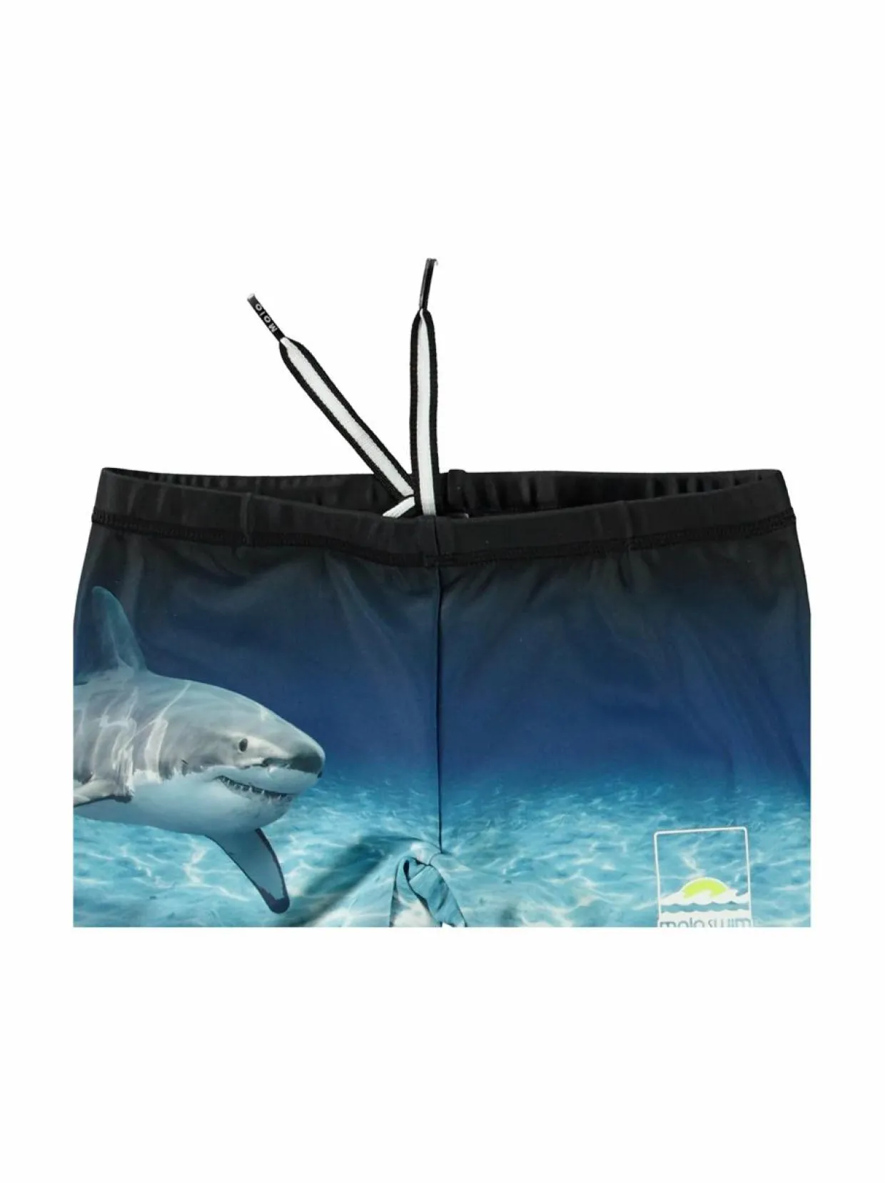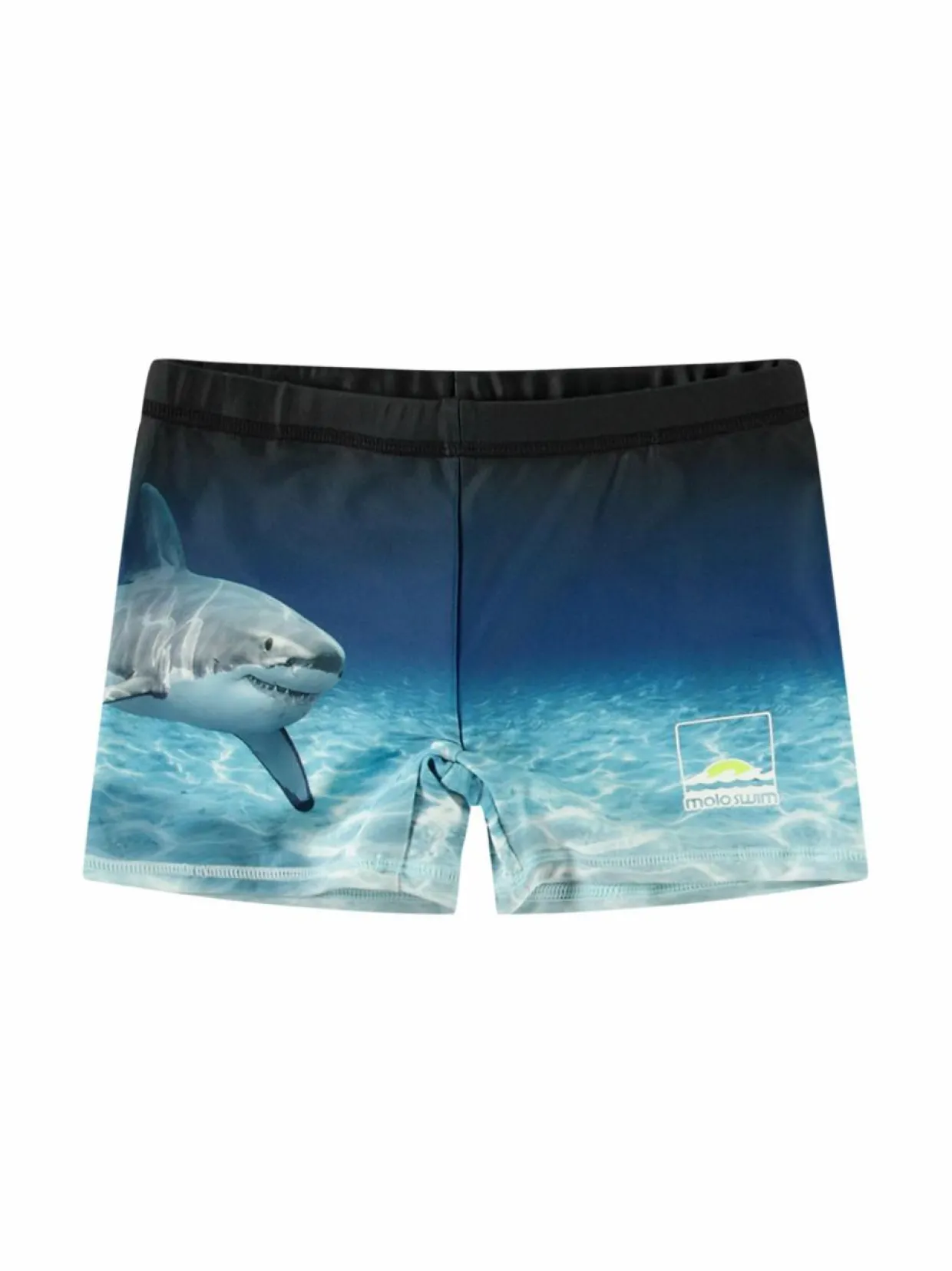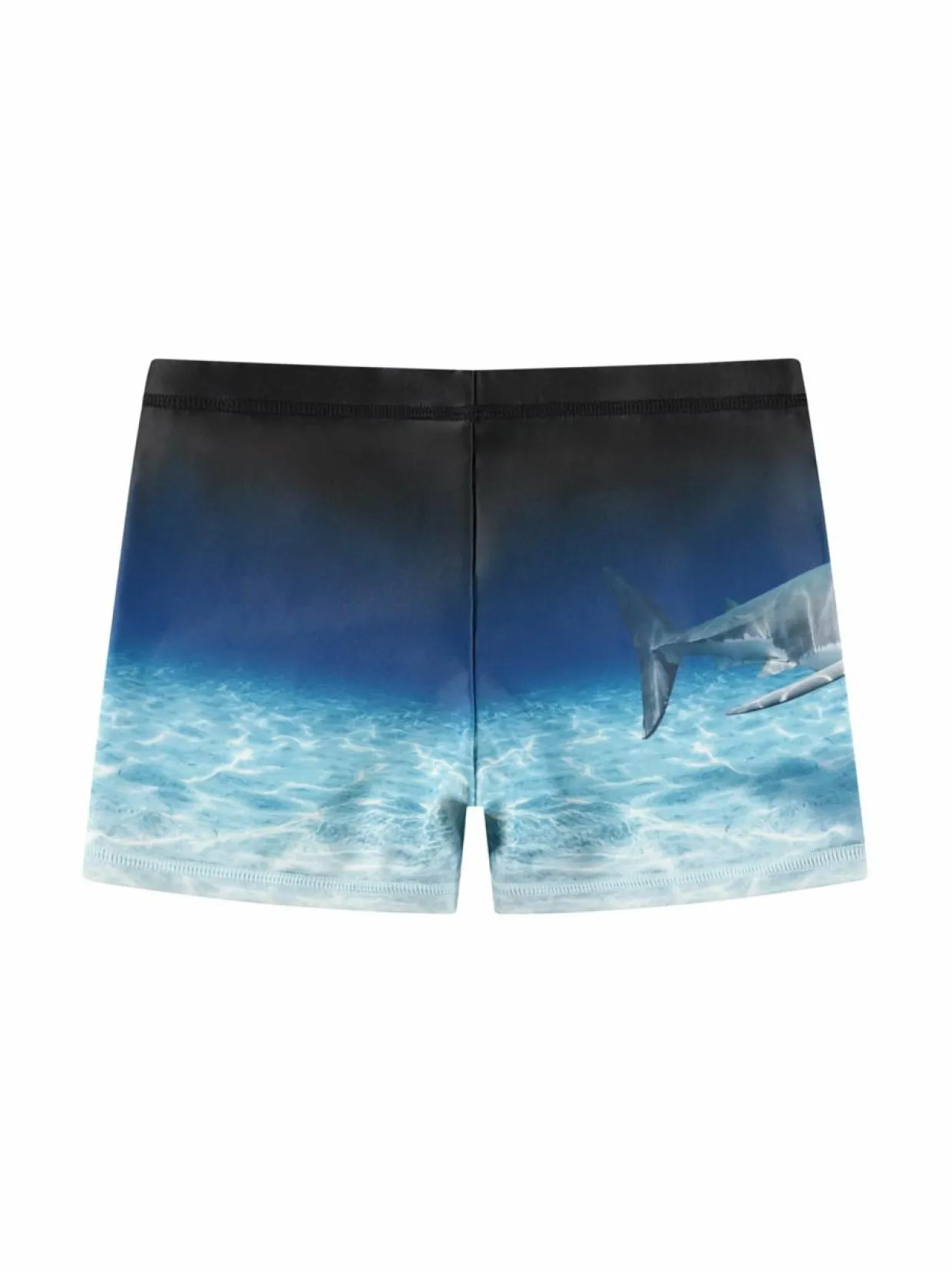 Molo-merkin Trunks-uimahousut on valmistettu nopeasti kuivuvasta ja kestävästä materiaalista. Uimahousuihin on painettu kauttaaltaan hieno meriaiheinen kuviointi ja niissä on säädettävä ja solmittava vyörärönauha. Uimahousut sopii täydellisesti uimiseen ja leikkimiseen vedessä. Polyesteri on kevyt ja hengittävä materiaali, joka kuivuu nopeasti. Elastaani lisää rakenteeseen joustavuutta ja käyttömukavuutta.