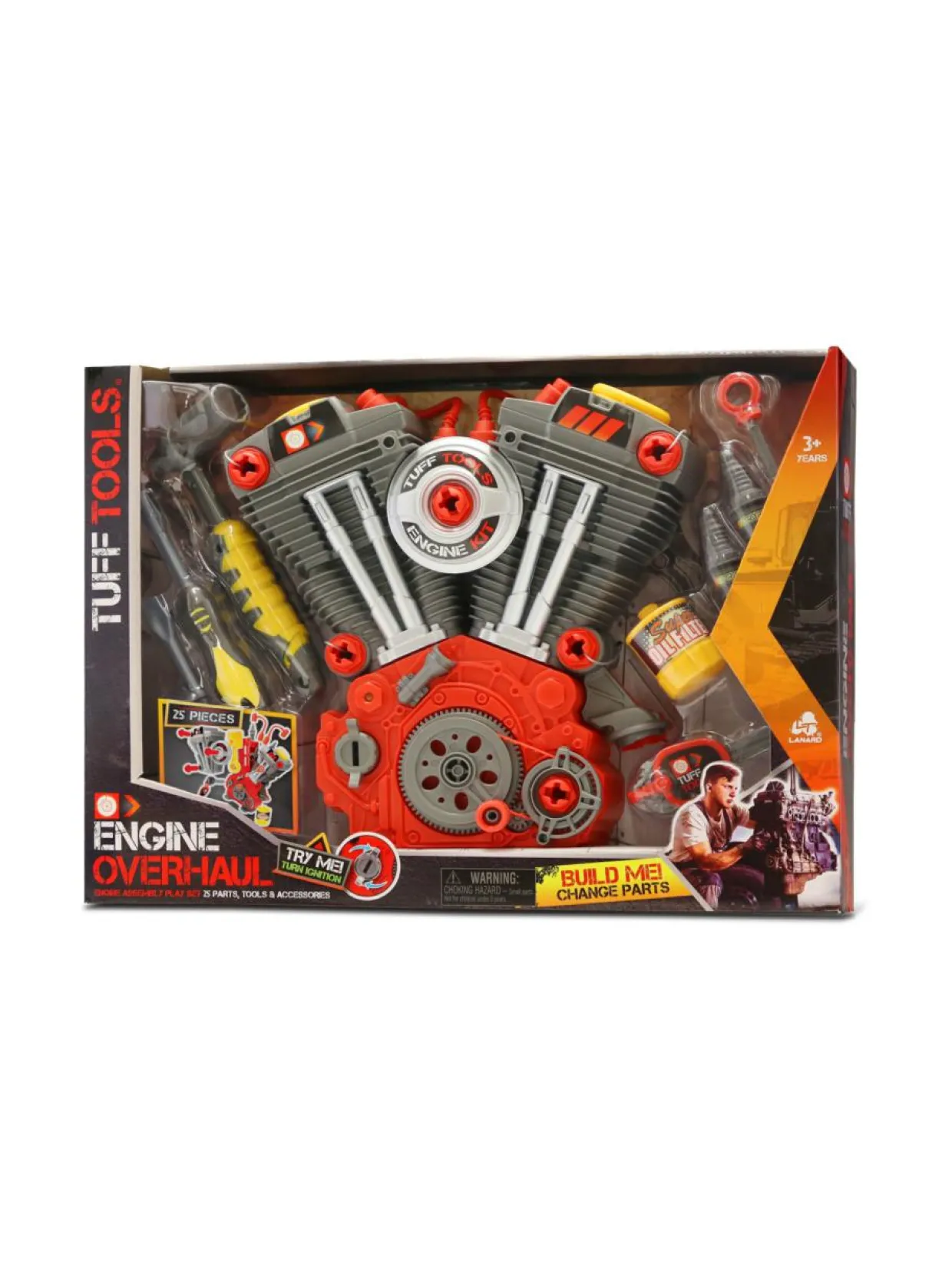 Tuff Toolsin Moottorin huolto -leikkisetti, jossa on ääni- ja valotehosteet, saa lapsesi tuntemaan itsensä oikeaksi mekaanikoksi. Settiin kuuluvien työkalujen runsaus pitää lapset kiireisinä leikeissään ja samalla auttaa heitä kehittämään kognitiivisia taitojaan. Lasten leikkisetti on suunniteltu erityisesti 3-vuotiaille ja sitä vanhemmille lapsille. Moottorista kuuluu ääniä ja siinä on valotehosteita, jotka taatusti ilahduttavat pieniä mekaanikkoja. 2V-moottori on helppo purkaa ja koota. Käännä kampea ja näet moottorin mäntien liikkuvan. Laita avain avaimenreikään ja käännä avainta, niin kuulet moottorin ottavan kierroksia ja näet valon hohtavan. Täydennä työkaluvalikoimaasi muilla Tuff Toolsin leikkityökaluilla ja leikkiseteillä!