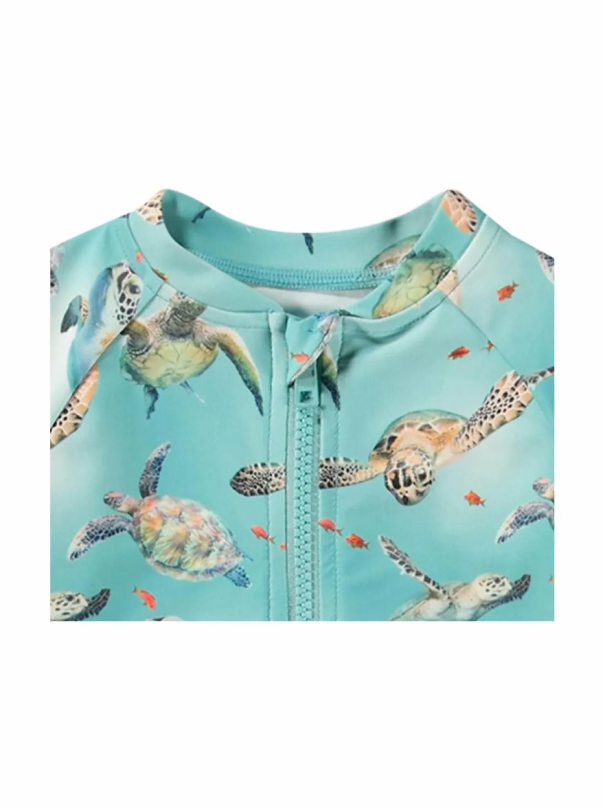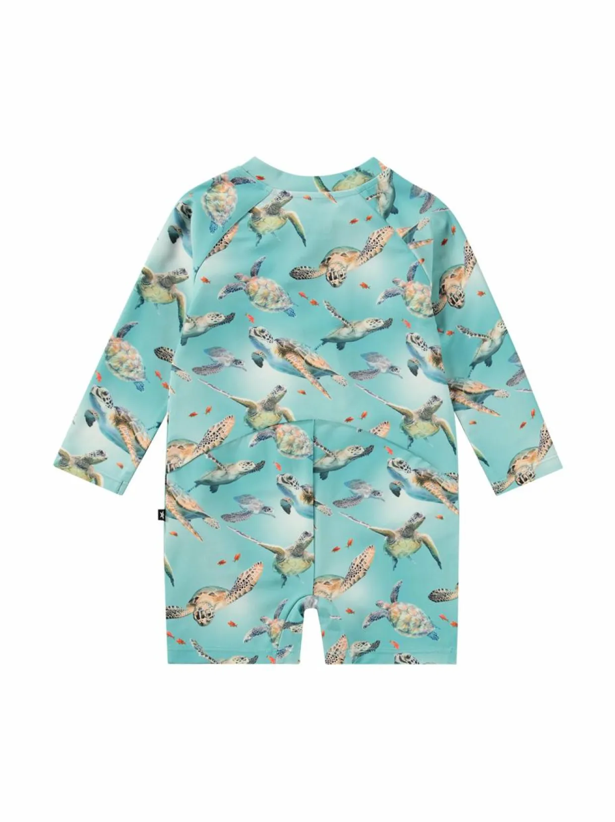 Molo-merkin uima-asu on valmistettu pehmeästä ja joustavasta materiaalista, joka on valmistettu kierrätetystä polyesteristä ja elastaanista. Uima-asussa on pitkät hihat ja vetoketjukiinnitys edessä. Uima-asun hihansuut sekä lahkeensuut ovat joustavat. Uima-asu on täydellinen valinta pienille lapsille niin uima-altaalle kuin rannalle. Polyesteri on kestävä ja helppohoitoinen materiaali, joka kuivuu nopeasti. Elastaani tekee materiaalista joustavan ja mukavan käyttää. Uima-asu on suunniteltu lapsille, jotka rakastavat uimista ja leikkimistä vedessä.