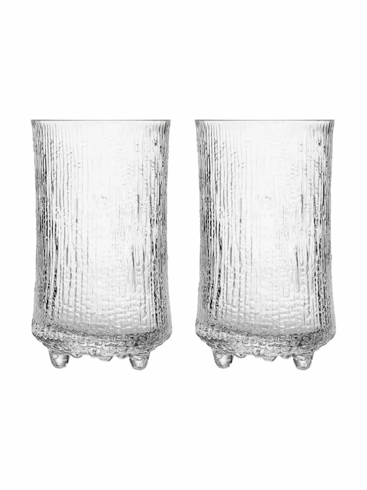 Tämä Iittalan Ultima Thule -olutlasisetti sisältää kaksi 60 cl lasia, jotka ovat täydellinen yhdistelmä pohjoismaista estetiikkaa ja käytännöllisyyttä. Tapio Wirkkalan vuonna 1968 suunnittelema Ultima Thule -sarja on tunnettu jääkimpaletta muistuttavasta eläväisestä pinnastaan, joka tekee jokaisesta lasista ainutlaatuisen.