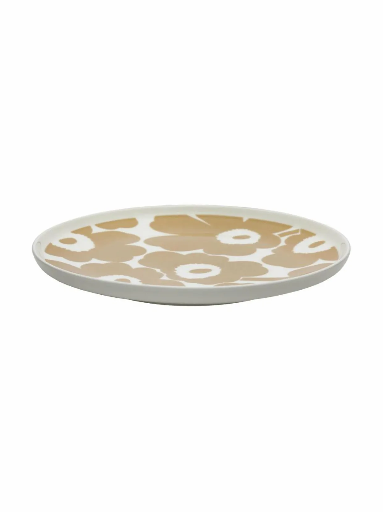 Oiva-lautasessa on Unikko-kuosi. Lautanen on valmistettu konepesun, uunin, mikroaaltouunin ja pakastuksen kestävästä valkoisesta keramiikasta.