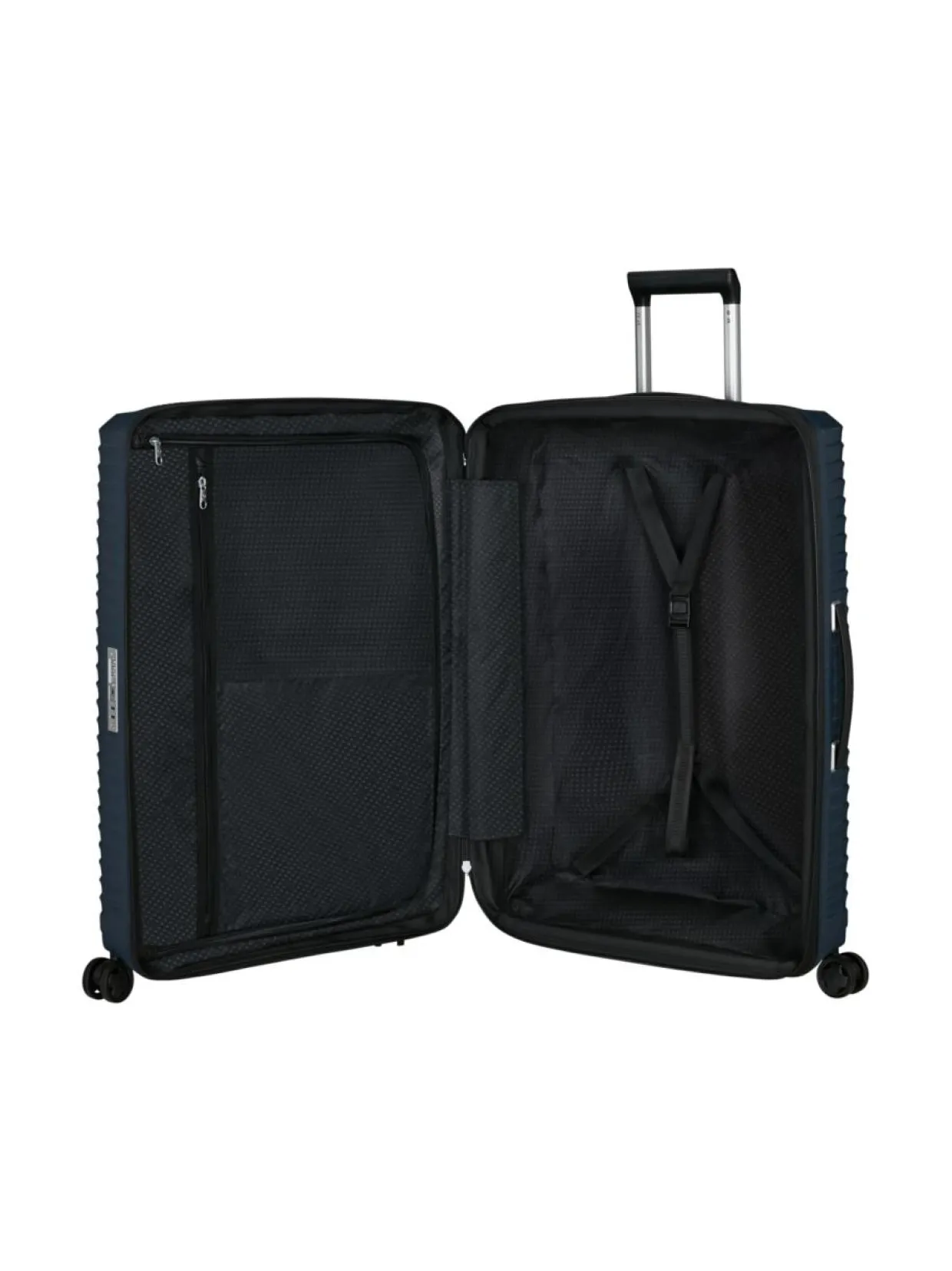 Samsonite Upscape -matkalaukku on valmistettu laadukkaasta ja kevyestä polypropeenista ja sen muotoilu varmistaa maksimaalisen tilan tavaroillesi. Saat eroteltua tavarasi taskullisella tilanjakajalla ja säädettävillä henkseleillä. Laukussa on lisätilaa tuova laajennusosa. Tuplapyörät vähentävät ääntä ja tärinää, sekä takaavat, että laukun kanssa on mukava liikkua. 100% matkalaukun ulkokankaan, sisävuoren, sisäkuminauhan ja sisävetoketjun painosta sekä vähintään 90% ulkovetoketjun painosta ja vähintään 65% ulkokuminauhan painosta on valmistettu kierrätetystä PET-muovista.