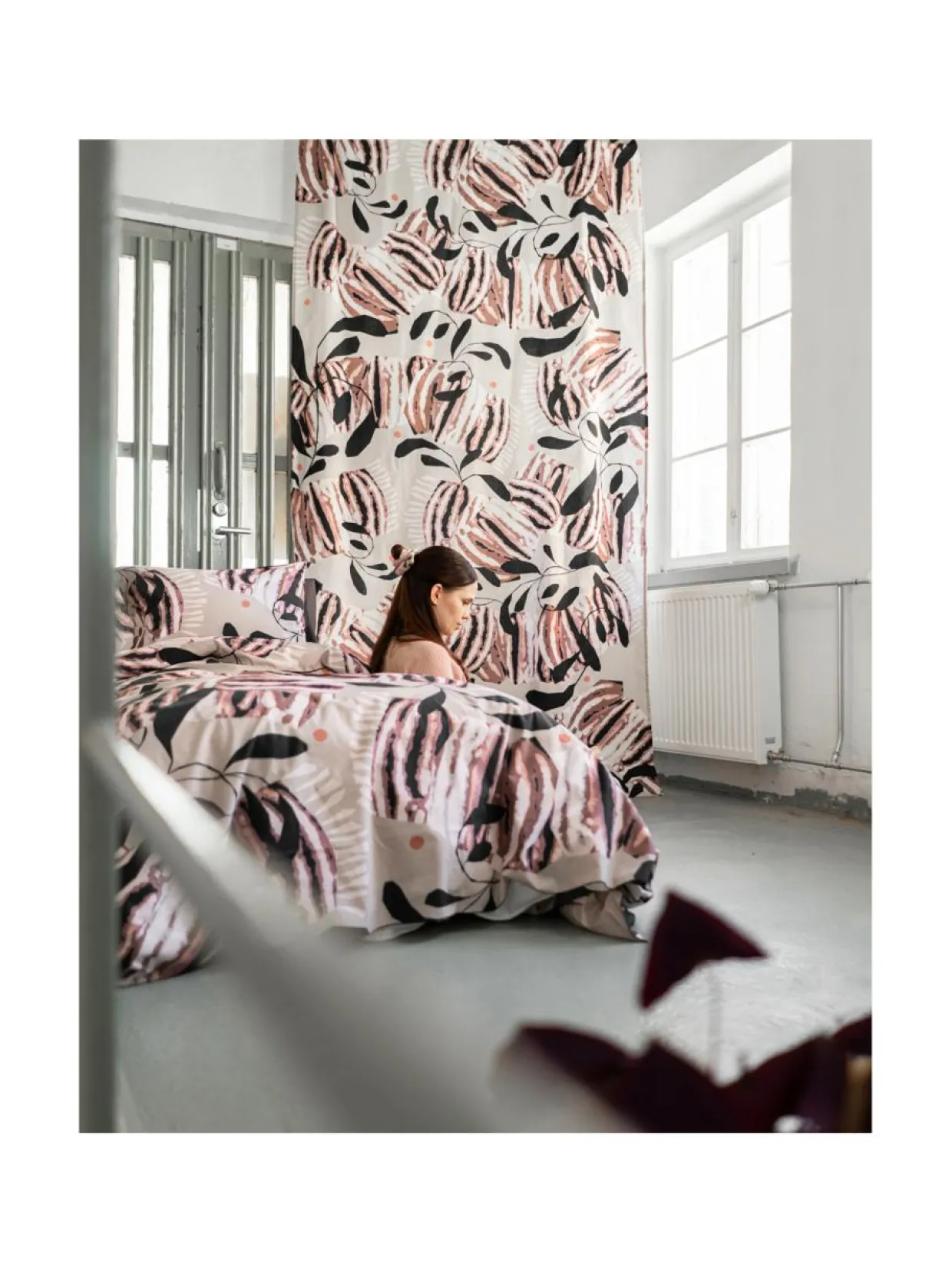Tukevasta puuvillasta valmistettu Sunnuntai-verho vie kotisi ainaiseen vapaapäivään ja sen lokoisaan olotilaan. Terhi Laitakarin suunnitteleman Sunnuntai-kuosin ihanalla räsymatolla lekoillaan vapaapäivänä aurinkoläikässä ja nautitaan koko kroppaan leviävästä hykerryttävästä rentouden tunteesta. Sunnuntai-verhoja on saatavilla ikityylikkäänä beigenä sekä sammaleen sävyisenä vihreänä.