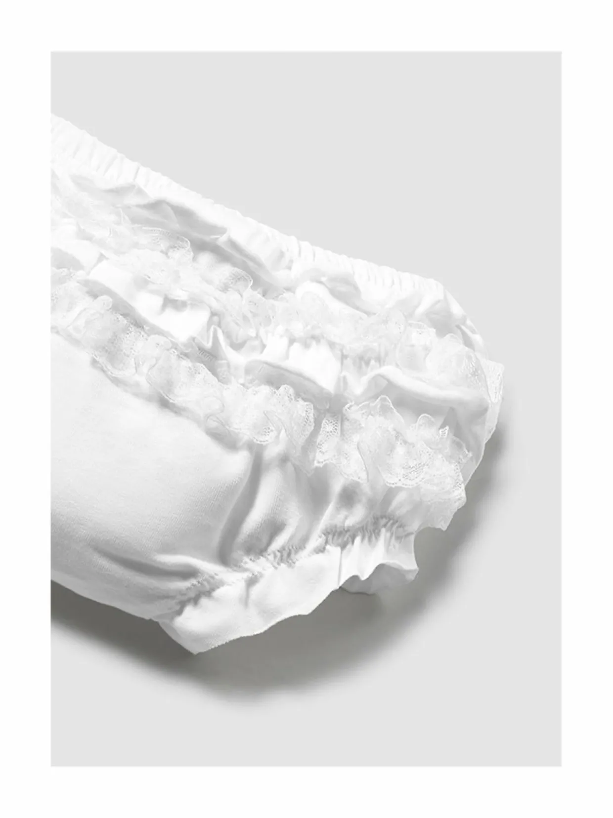 Nämä röyhelöiset vauvojen alushousut ovat valmistettu pehmeästä puuvillasta, pitäen pienokaisen ihon pehmeänä ja hengittävänä koko päivän ajan. Alushousuissa on korkea vyötärö, joustavat lahkeensuut ja riittävästi tilaa vaipalle. Ne sopivat täydellisesti esimerkiksi juhlamekon alle.