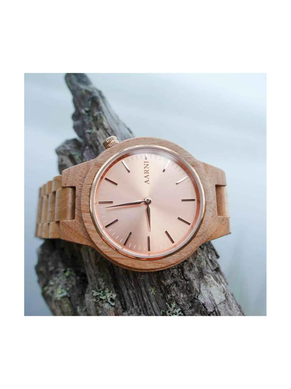 Kauneutta ja ikiaikaista viisautta. Aarni Vega kietoo yhteen upealla tavalla suomalaisen saarnen ja hennon ruusukultaisen taustan. Kellon sydämenä toimii tarkka ja laadukas sveitsiläinen Ronda-koneisto.