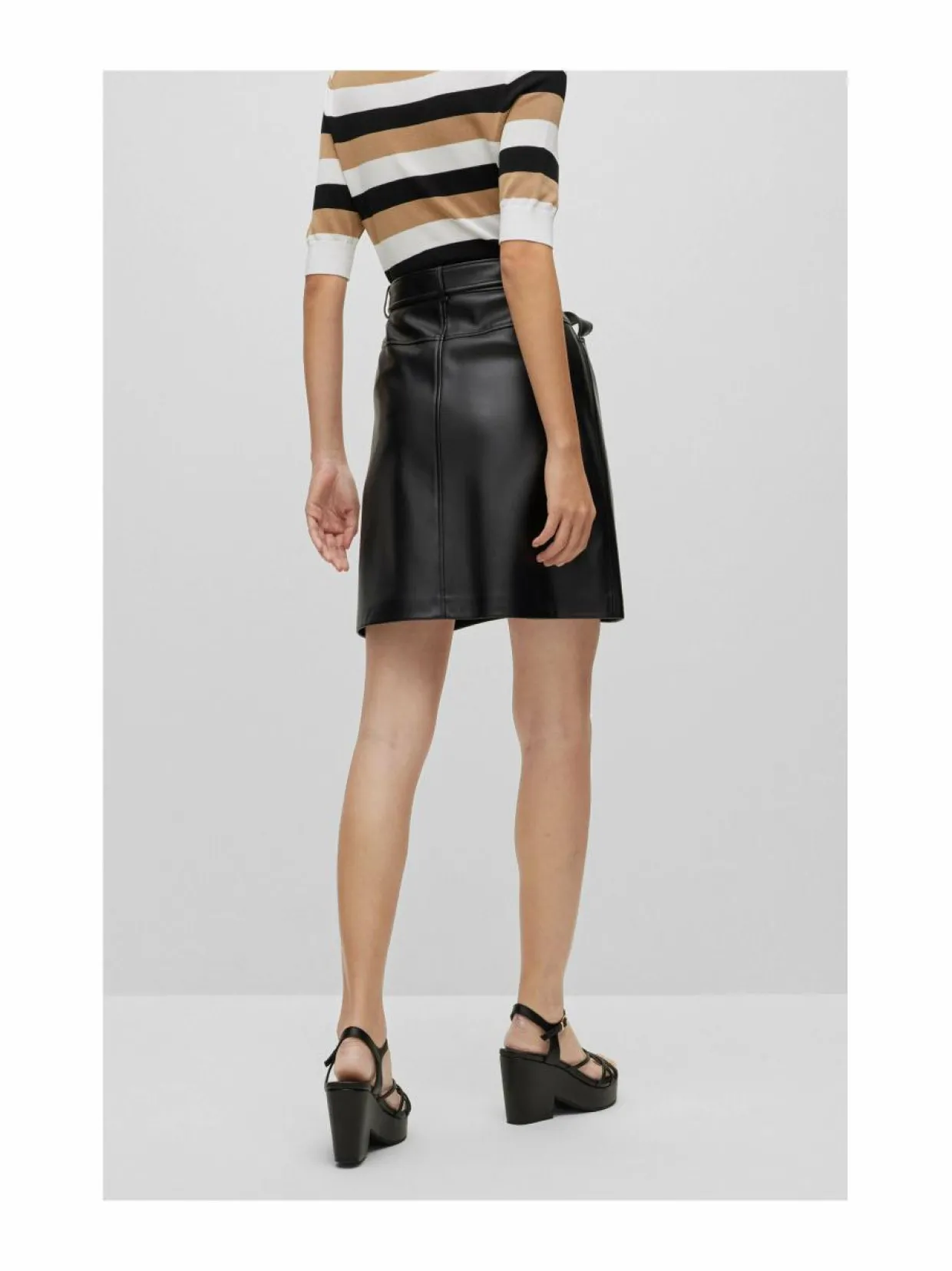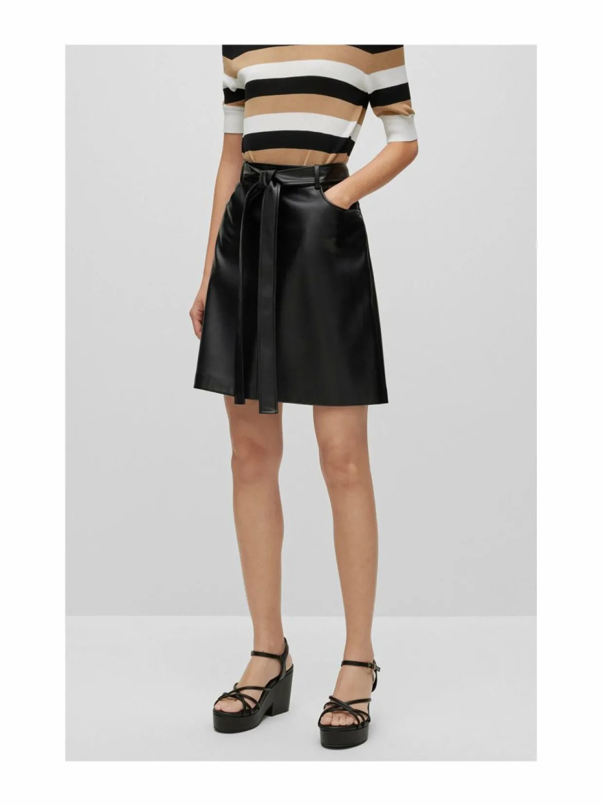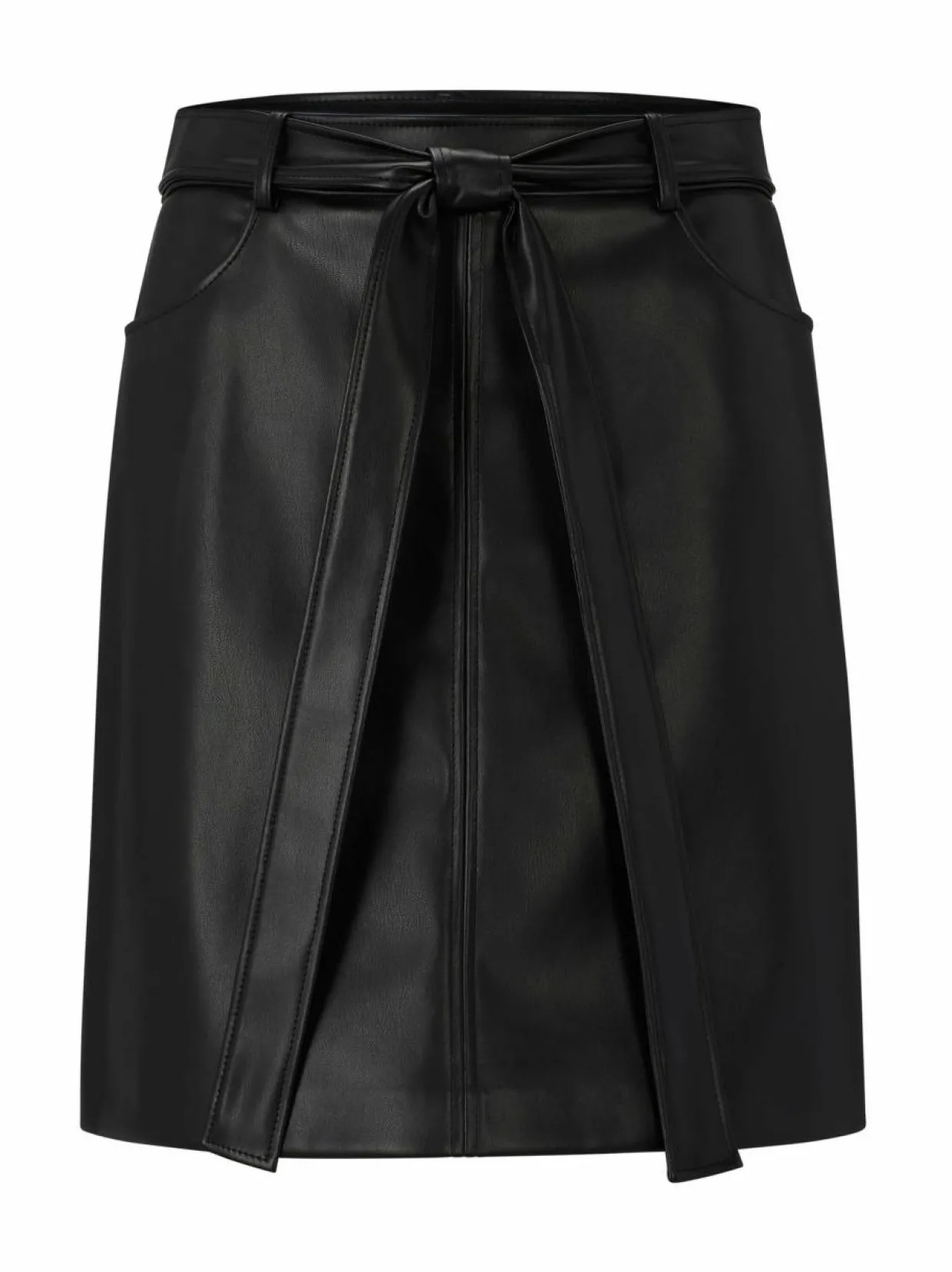 Velipa-tekonahkahame luo modernin lookin. Vyötäröllä on yhteensopiva solmittava vyö, edessä kätevät taskut. Hameen helma on hieman kellotettu.