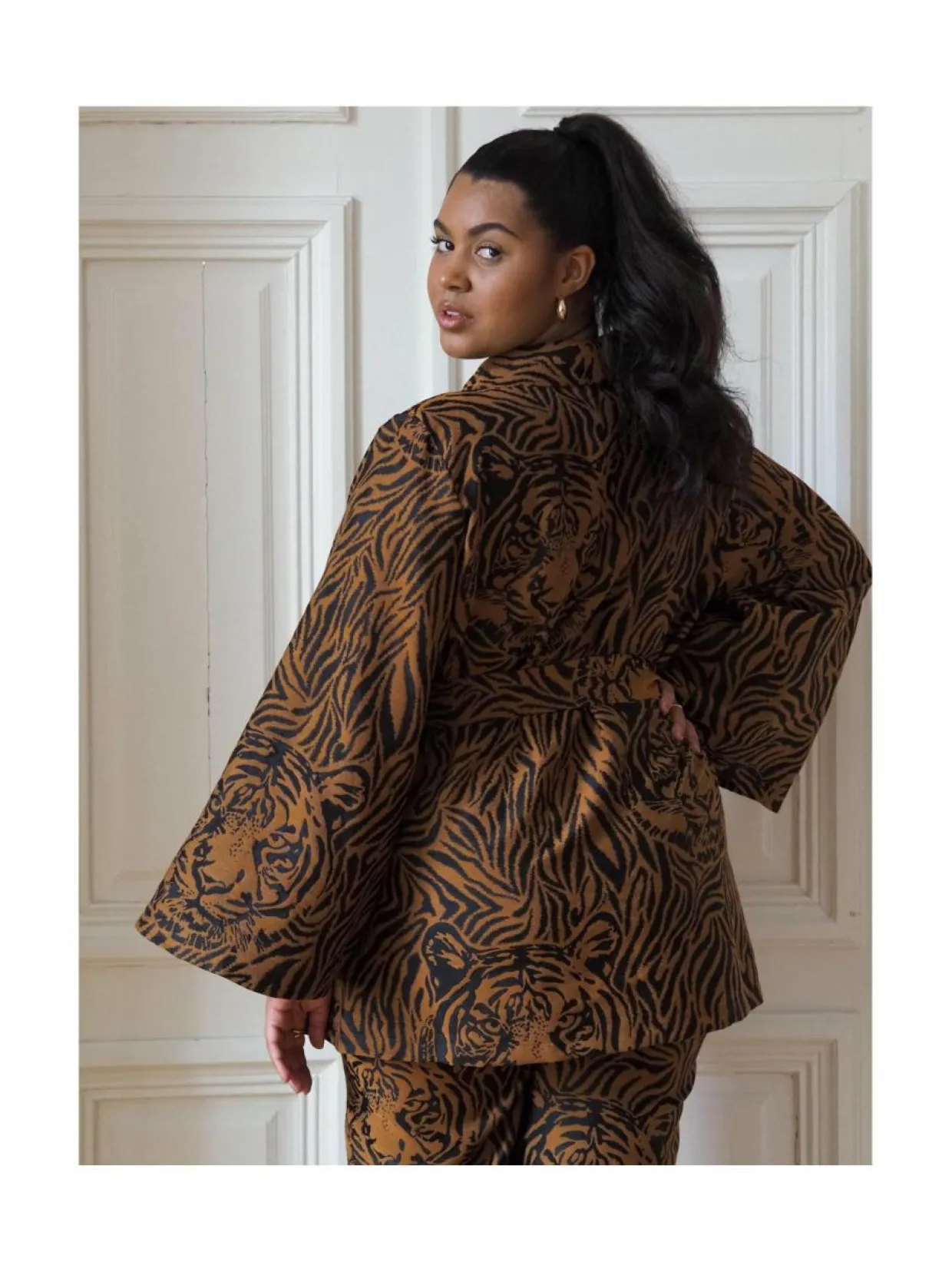 Materiaali35 % polyesteri, 34 % viskoosi, 32 % puuvilla PesuohjeetKonepesu VäriVIGAROUS CARAMEL Avainsanatjakku, bleiseri, takki, tiikerikuvio, Uhana, päällystakki, kevättakki