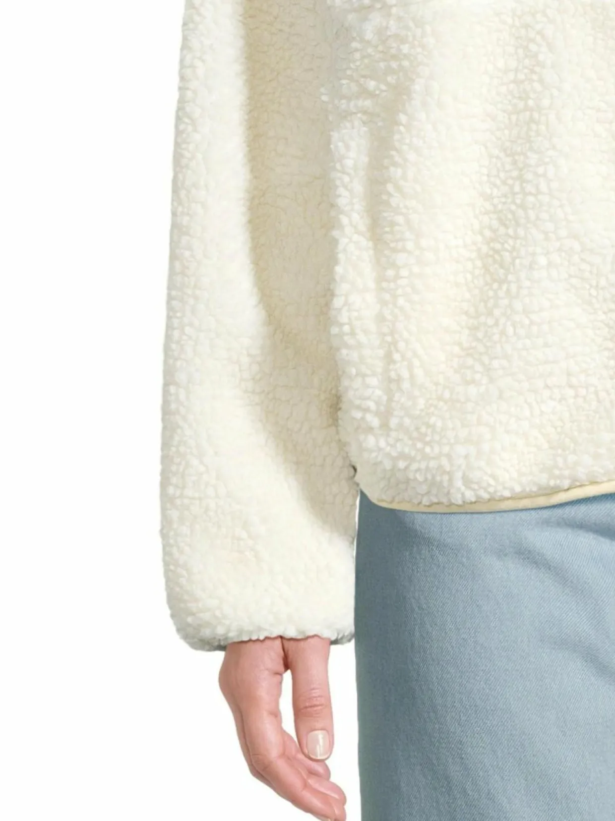 American Vintage Vestes -teddy-takki on täydellinen yhdistelmä lämpöä ja mukavuutta. Takki on valmistettu kierrätetystä polyesteristä, ja sen pehmeä, shearling-lampaannahkaa muistuttava pinta tuo vaatteeseen rennon ja lämpimän ilmeen. Kokopitkä vetoketju ja sivutaskut tekevät takista käytännöllisen, ja sen rento istuvuus sopii monenlaisiin asukokonaisuuksiin. Takki on suunniteltu pitämään sinut lämpimänä kylminä päivinä, ja sen huolellisesti viimeistellyt yksityiskohdat heijastavat American Vintage -brändin laatutietoista suunnittelua.