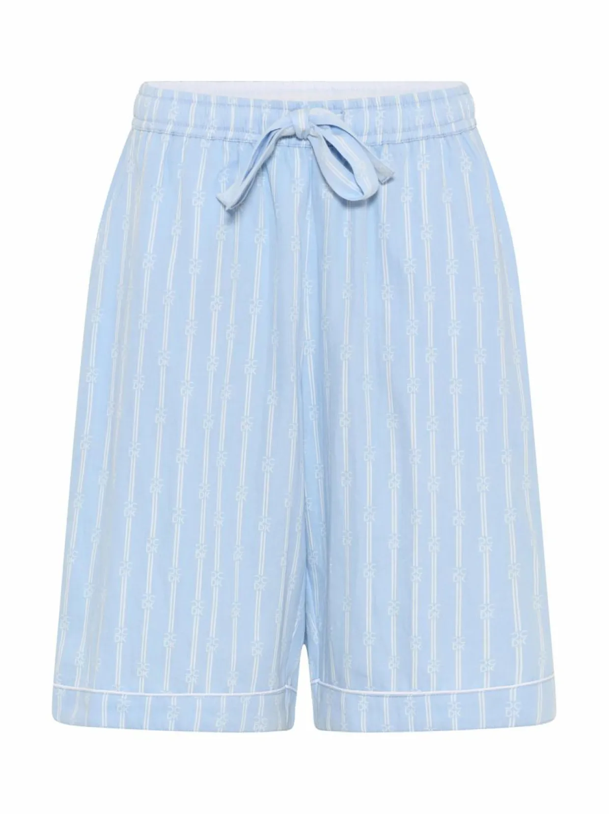 CCDK Copenhagenin pidemmällä lahkeella varustettu pyjamashortsimalli. Vyötärö on joustava ja siinä on säätömahdollisuus. Shortsit on koristeltu pystyraidoilla ja monogrammikuosilla. Materiaalina pehmeä ja hengittävä luomupuuvilla.