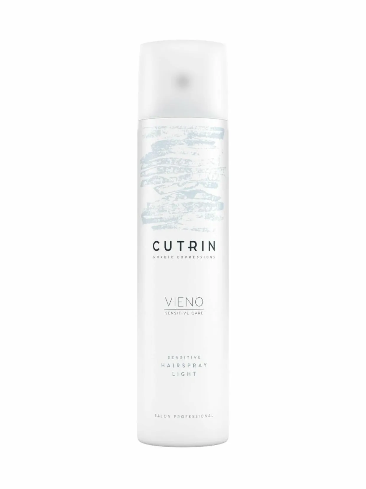 Hajusteeton, kevyt Cutrin Vieno Sensitive Hairspray Light -hiuskiinne antaa elastista tukea ja painotonta kontrollia. Luonnollista pitoa ja kiiltoa. Helppo harjata pois hiuksista ilman jäämiä. Suojaa kosteutta vastaan. Kehitetty hennoille hiuksille ja herkälle hiuspohjalle. Testattu pohjoisissa ääriolosuhteissa.