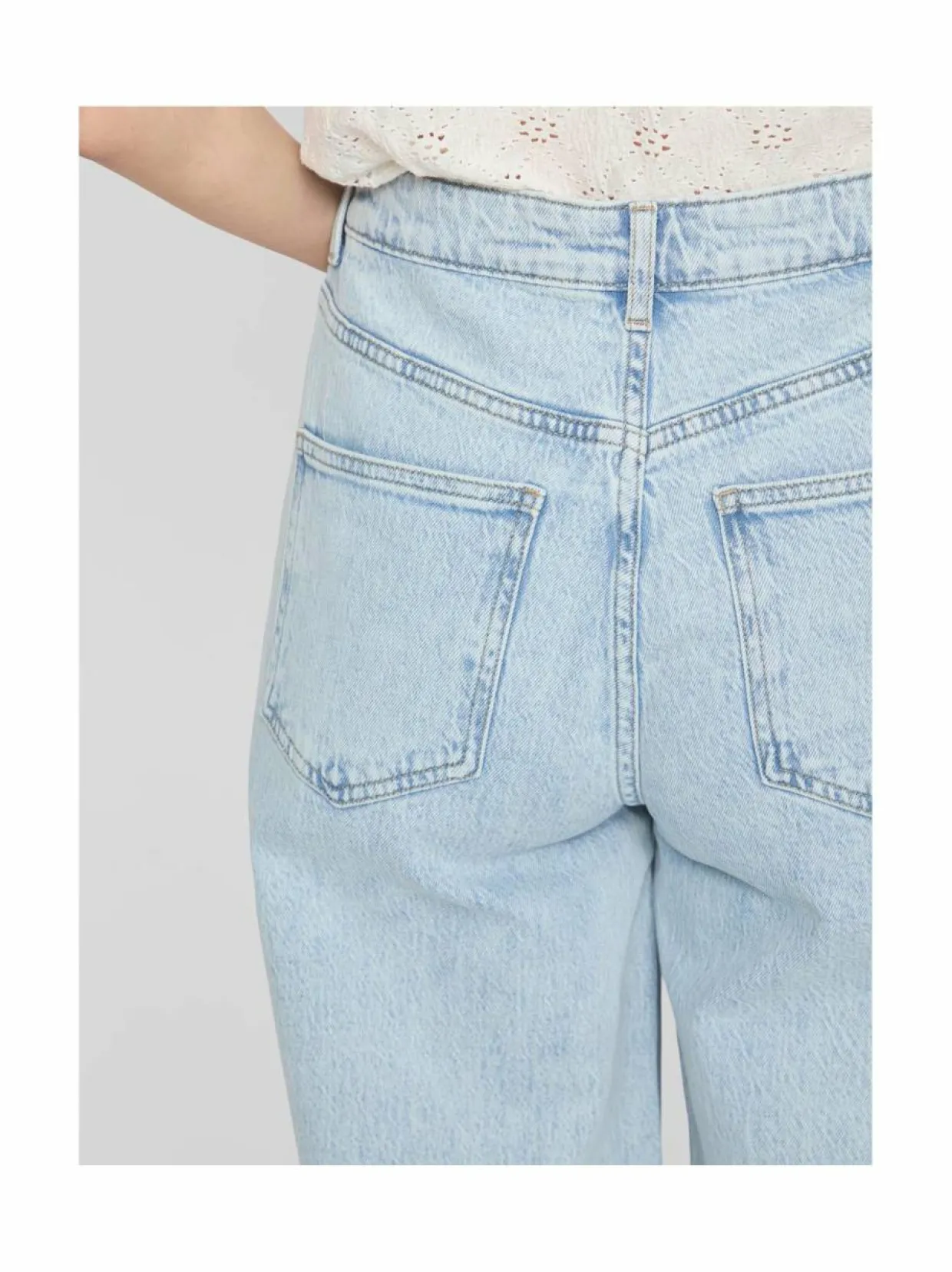 Materiaali99 % puuvilla, 1 % elastaani Hoito-ohjeetPesu samansävyisten kanssa. PesuohjeetKonepesu ValmistusmaaPakistan VäriLIGHT BLUE DENIM AvainsanatVILA, farkut, leveälahkeiset farkut, korkeavyötäröiset farkut, housut