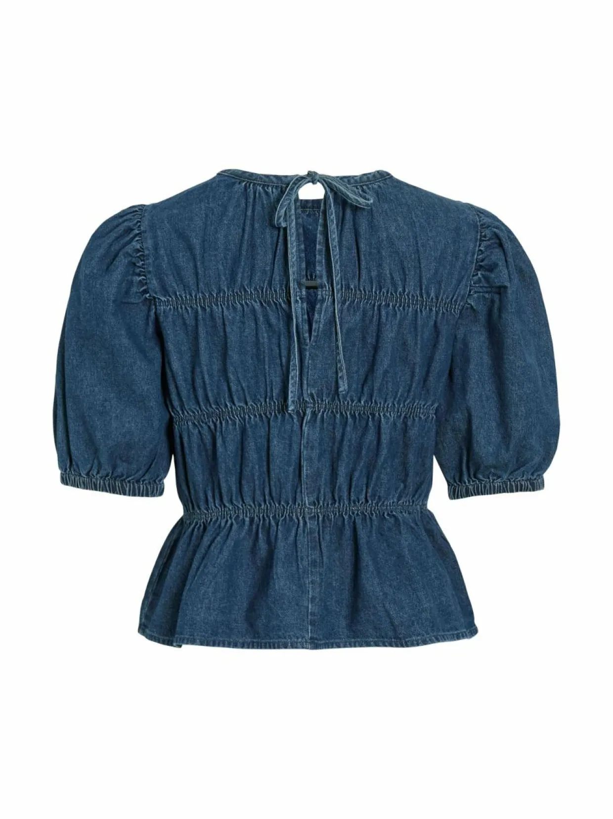 ViHeidi 2/4 -farkkupaita on valmistettu 100 % puuvillasta. Siinä on puolipitkät hihat. Rakenteessa on joustavat poimutukset, jotka antavat paidalle modernin, tyköistuvan siluetin. Niskaa täydentää nauhoilla solmittava pisara-aukko.