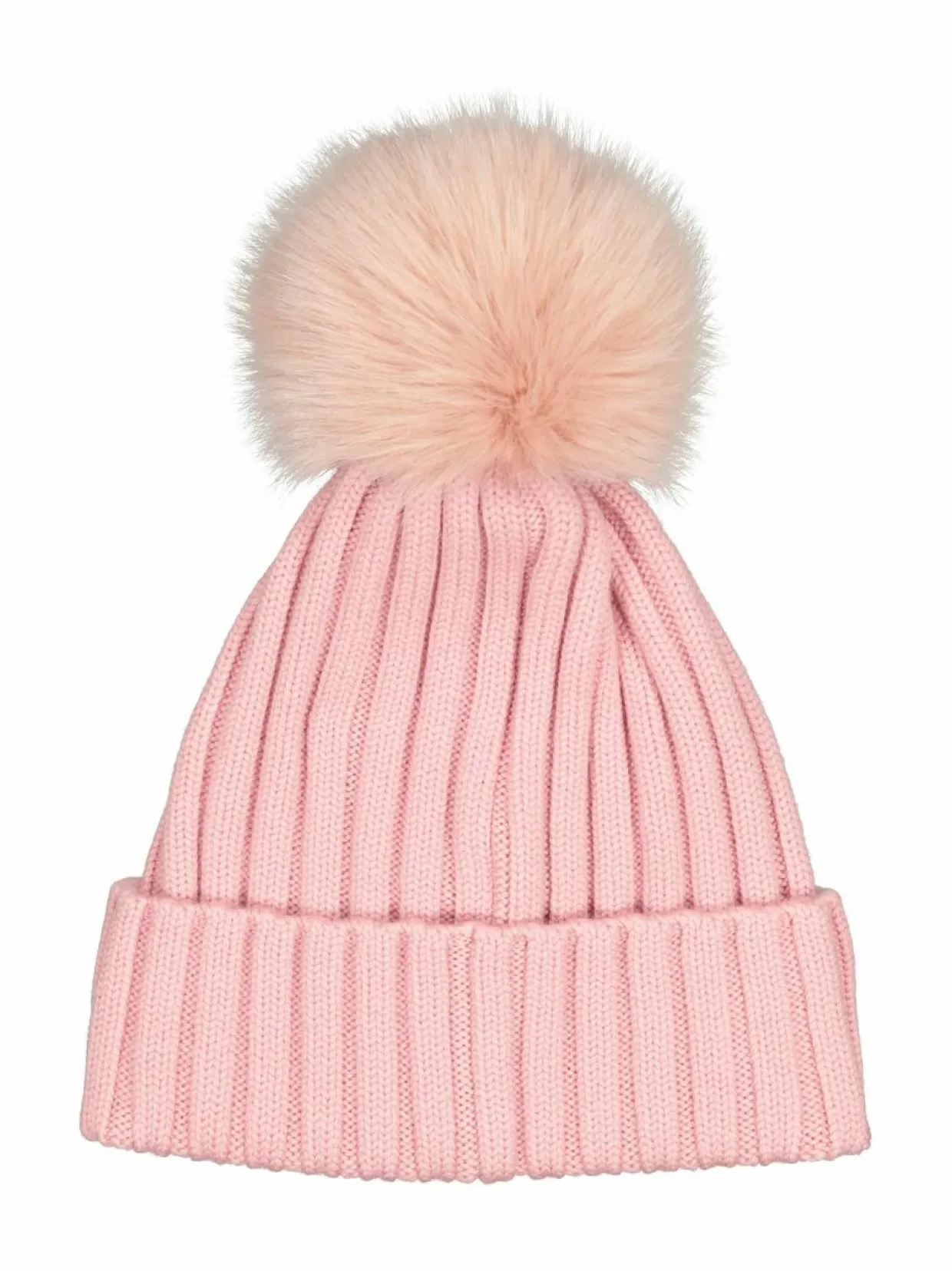 Pehmeä ja lämmin ribbineulepipo, jossa on pörröinen tekoturkistupsu. Pipo on valmistettu villasta, joka on miellyttävä ja hengittävä. Pipossa on taitereuna ja Monclerin logo edessä.