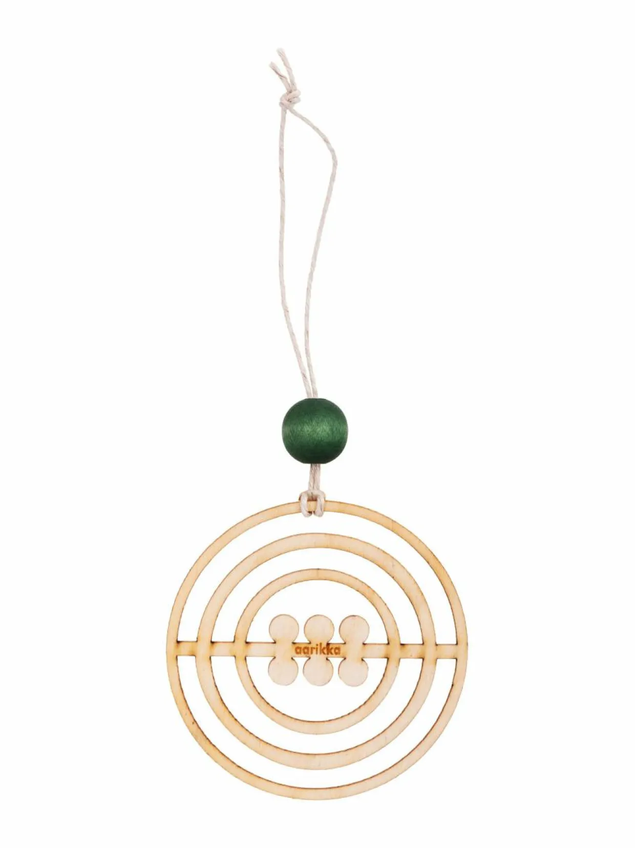 Aarikan Vilma-joulukoriste on yksinkertaisen kaunis ja ajaton lisä jouluisiin koristeluihin. Tämä koivusta ja vaahterasta valmistettu koriste koostuu tyylikkäästi leikatuista ympyränmuotoisista kuvioista, jotka luovat harmonisen ja rauhallisen ilmeen. Koristeen yläosassa oleva puuhelmi tuo kontrastia vaalealle puulle ja tekee siitä erityisen viehättävän.