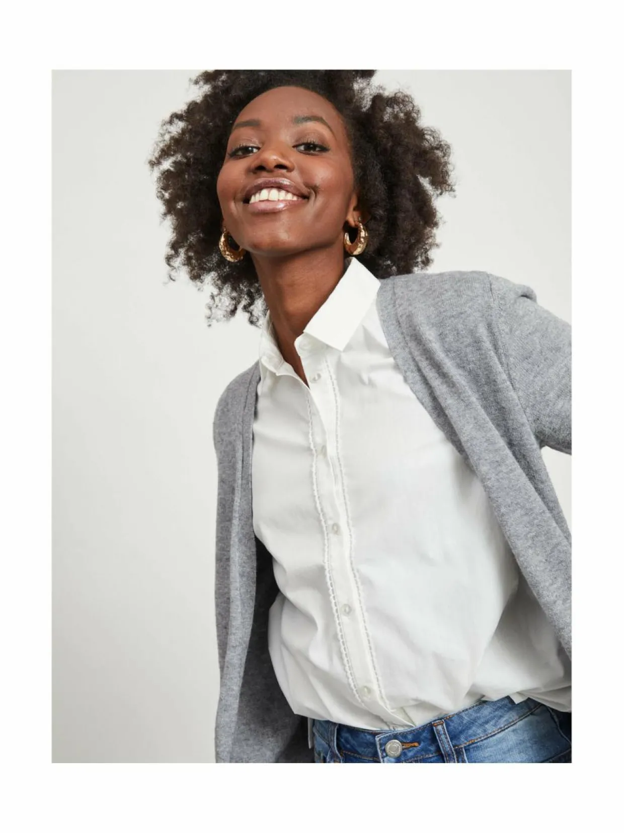 Viril on edestä avoin neule rentoon talvityyliin. Siinä on kaksi avointa käsitaskua. Hihansuut ja helma on viimeistelty joustinneuleresoreilla.