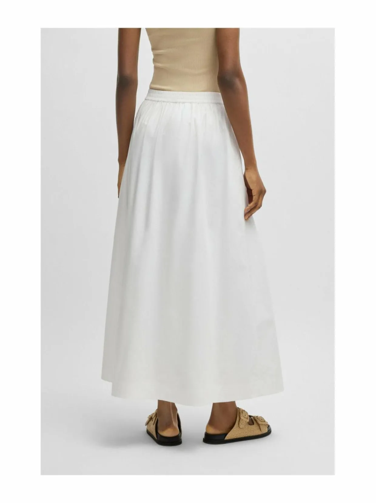 BOSS vaatemerkin Vlondie-hame on valmistettu pehmeästä popliinikankaasta, joka tuntuu miellyttävältä ihoa vasten. Sen muotoilu on rennon ilmava, sopien monenlaisiin tilaisuuksiin. Hameessa on joustava vyötärö, joka tarjoaa mukavan istuvuuden sekä käytännölliset sivutaskut.