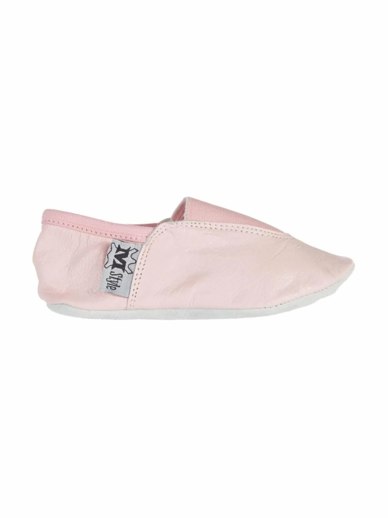 Nahkaisten voimistelutossujen pohjissa on pitävät, kuvioidut kumipaikat. Päällä on venyke.
