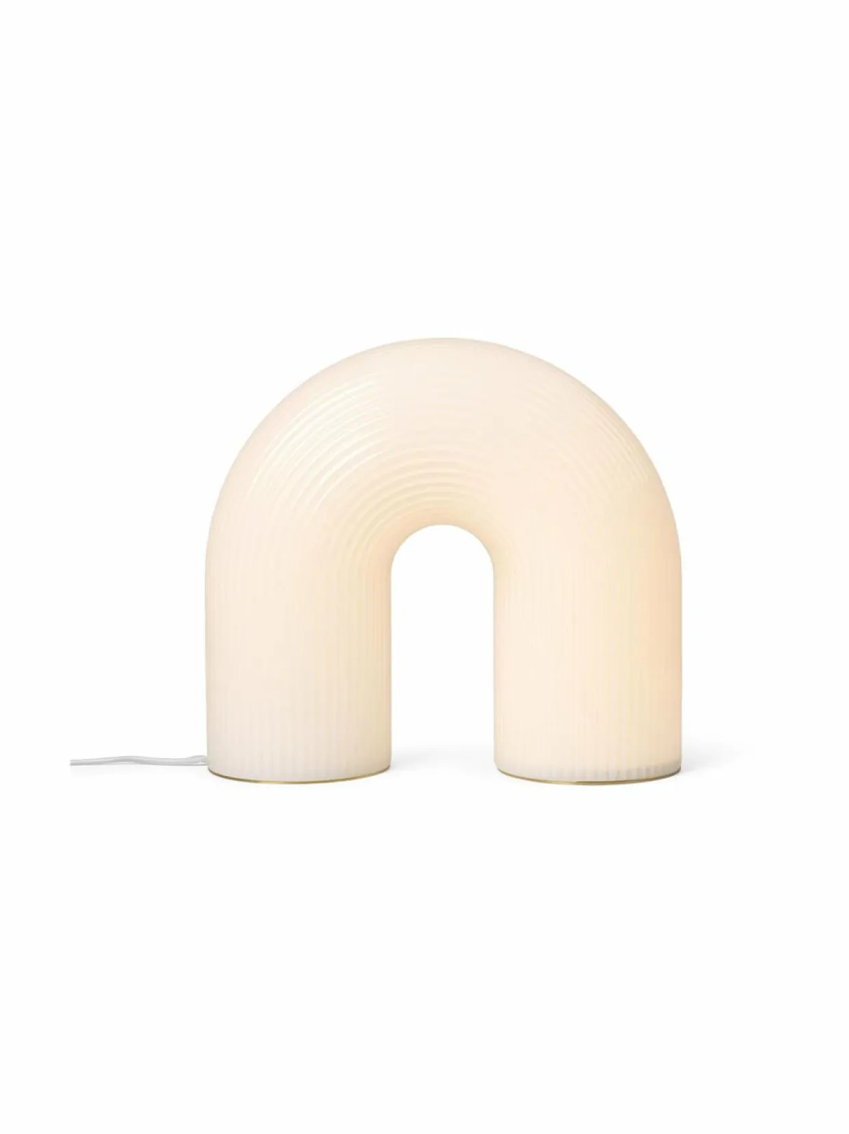 Muinaisilta pylväiltä veistoksellisen muotonsa lainannut Vuelta-valaisin toimii lempeänä tunnelmavalona ja kauniina sisustuselementtinä esimerkiksi kirjahyllyllä, yöpöydällä, lipastolla tai ikkunalaudalla. Kaarevan valaisimen aaltoileva pinta on opaalilasia, jonka läpi valo suodattuu pehmeästi. Valaisimessa on LED-polttimo ja himmennin.