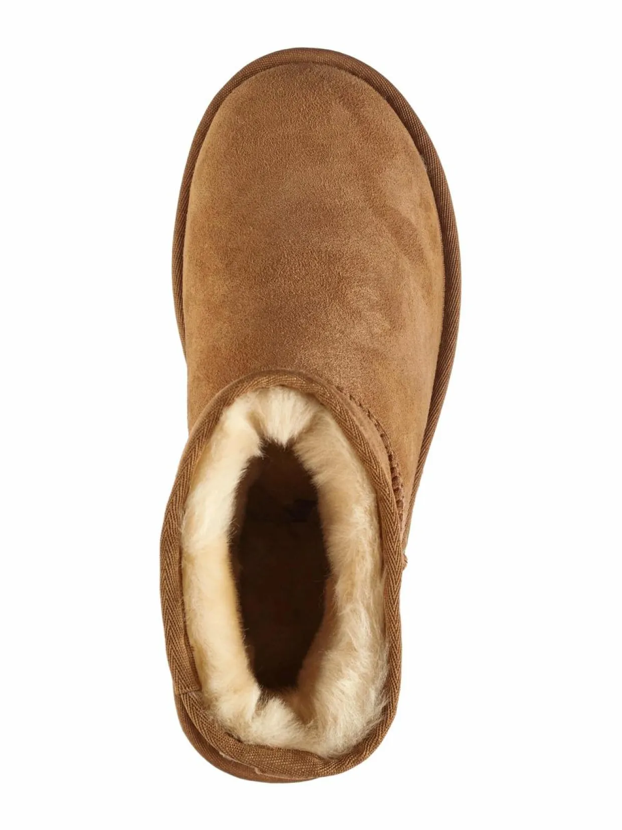 UGG:in W Classic Mini II -mokkanahkanilkkurit on vuorattu pehmeällä ja pörröisellä lampaanturkiksella. Klassikon pinnasta on nyt tehty likaa ja vettä hylkivä ja pehmustusta on lisätty aiempiin malleihin verrattuna.