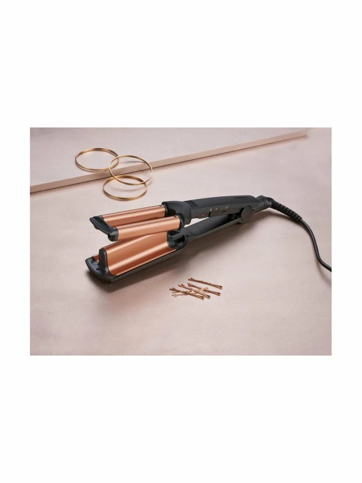 BaByliss W2447E -laineraudalla saat helposti täydellisen lainekampauksen! Painele hiussuortuva turmaliinilla päällystettyjen rautojen välissä ja lopputuloksena ovat kauniit, kiiltävät laineet.