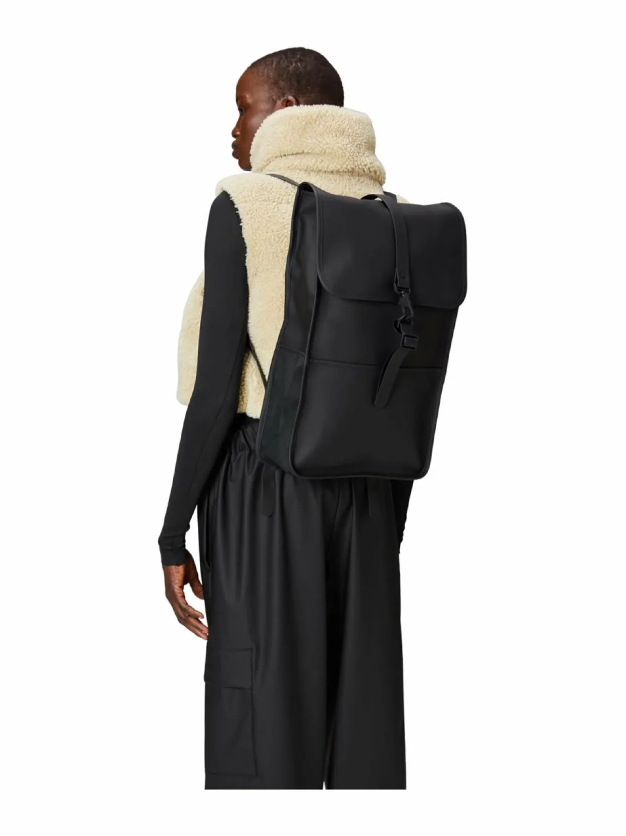 Rainsin klassikkoreppu on tunnistettavissa selväpiirteisestä läpästä ja keskellä olevasta hihnasta, joka sulkeutuu karabiinilukolla. Tämä tyylikäs ja ajaton vedenkestävä reppu sisältää sisäisen läppäritaskun, tilavan pääosaston sekä piilotetun ulkoisen puhelintaskun takapaneelissa. Reppu on valmistettu Rainsin vedenpitävästä PU-kankaasta, joka on suunniteltu kantamisen vahvuutta, kestävyyttä ja pehmeää tuntua ajatellen.