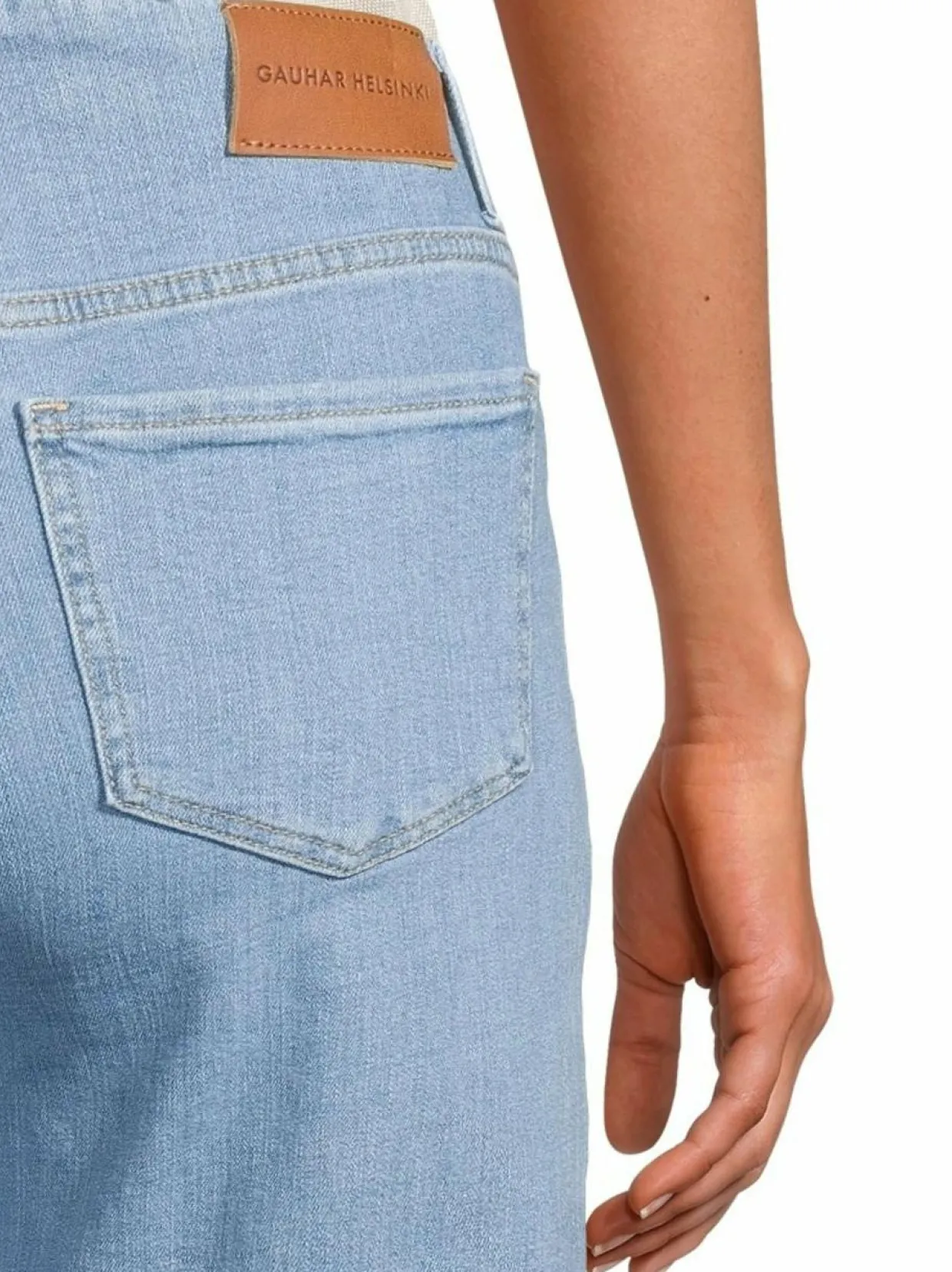Materiaali95 % puuvilla, 3 % polyesteri, 2 % elastaani Hoito-ohjeetKonepesu 30 °C VäriLIGHT BLUE AvainsanatGauhar Helsinki, farkut, housut, leveät farkut