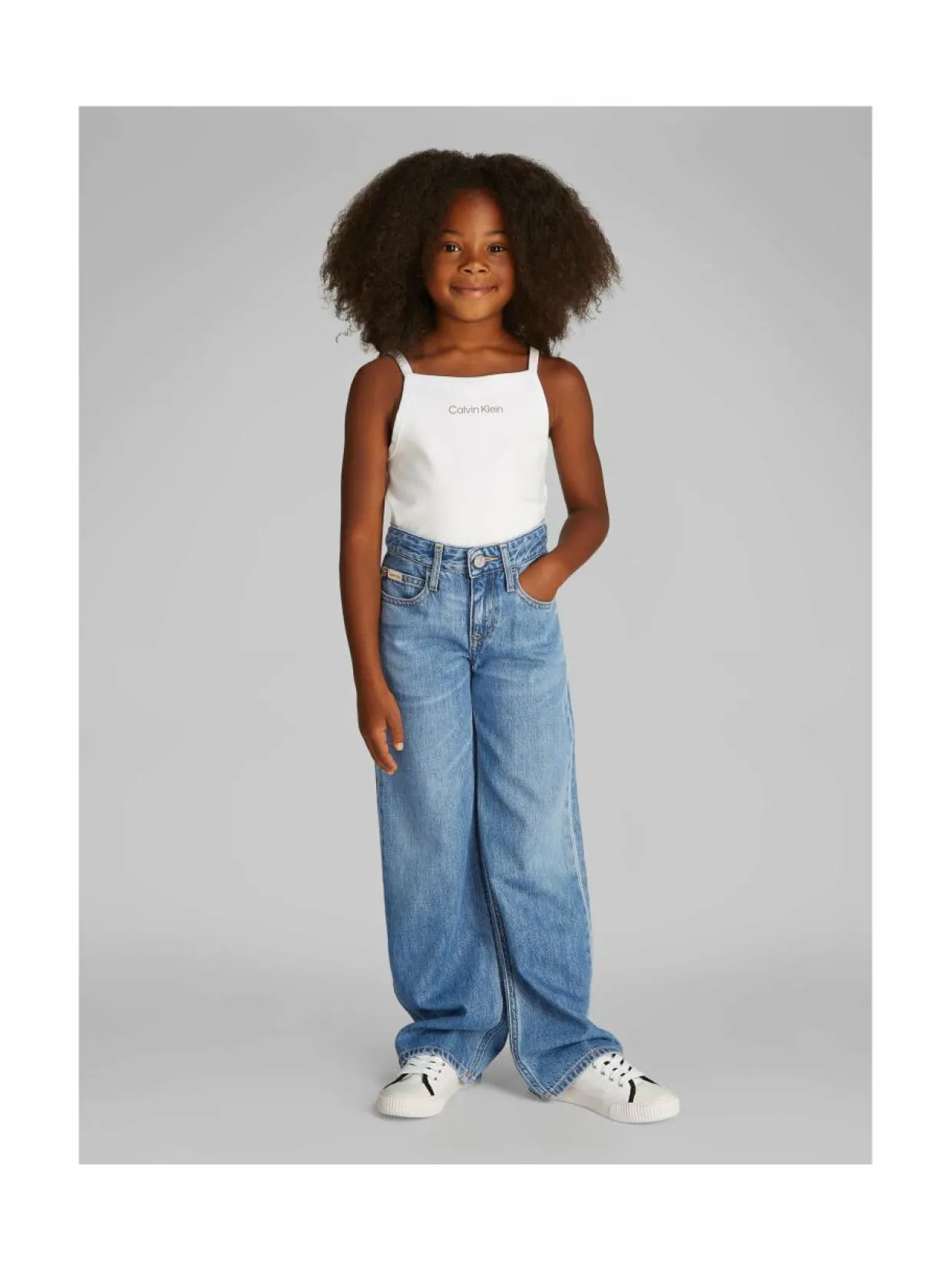 Mukavan rennonmalliset ja leveälahkeiset farkut lapsille. Calvin Klein Kids -malliston farkkuhousuissa on yhteensä viisi taskua. Logomerkki on sijoitettu taakse. Materiaalina on käytetty miellyttävän tuntuista puuvilla-lyocellia.
