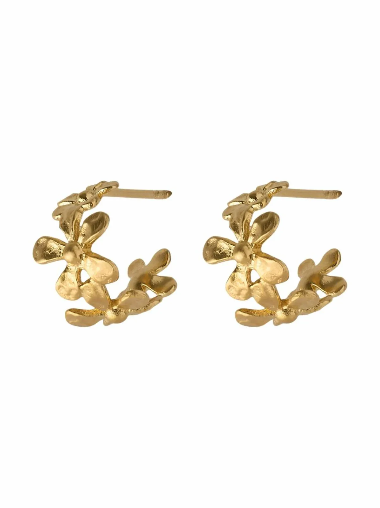 Elegantit korvakorut kukkamotiiveilla. Pernille Corydon merkkiset Wild Poppy -korvakorut on valmistettu ympäristötietoisesta kullatusta kierrätyshopeasta, joka on kevyt ja miellyttävä käyttää. Koko 10 mm.