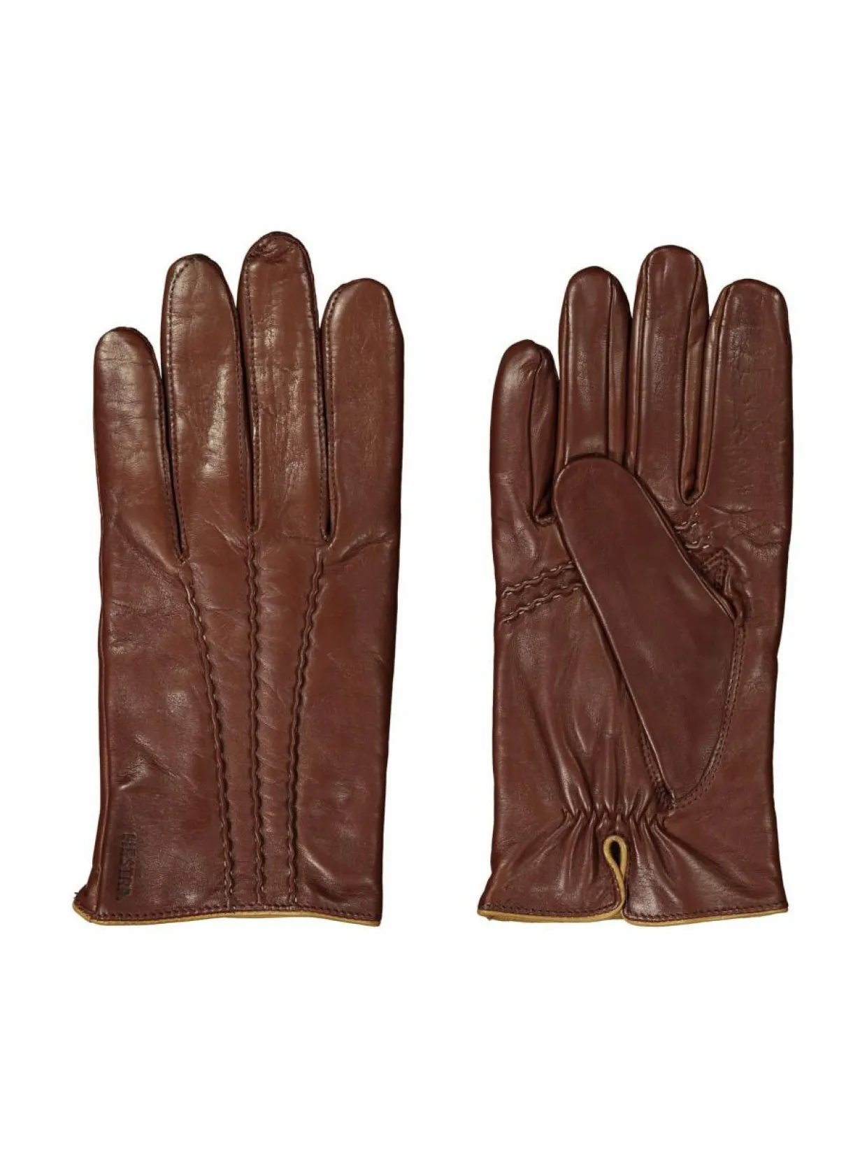 Tikkisomistein varustetuissa eleganteissa nahkakäsineissä on lämmin ja hengittävä villavuori.